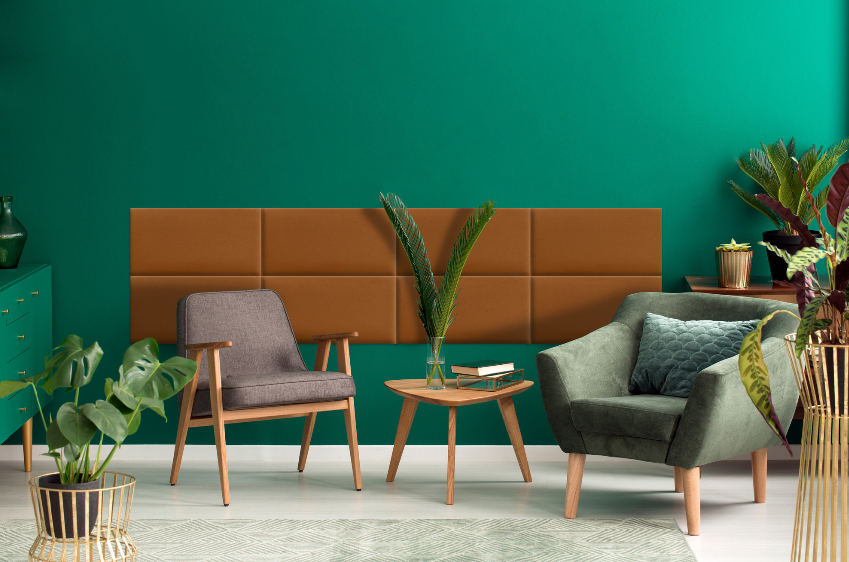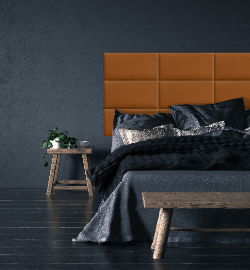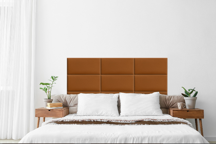 Das gepolsterte Paneel in Honigfarbe verwandelt jede Wand in ein Highlight – warm, elegant und voller Charakter.