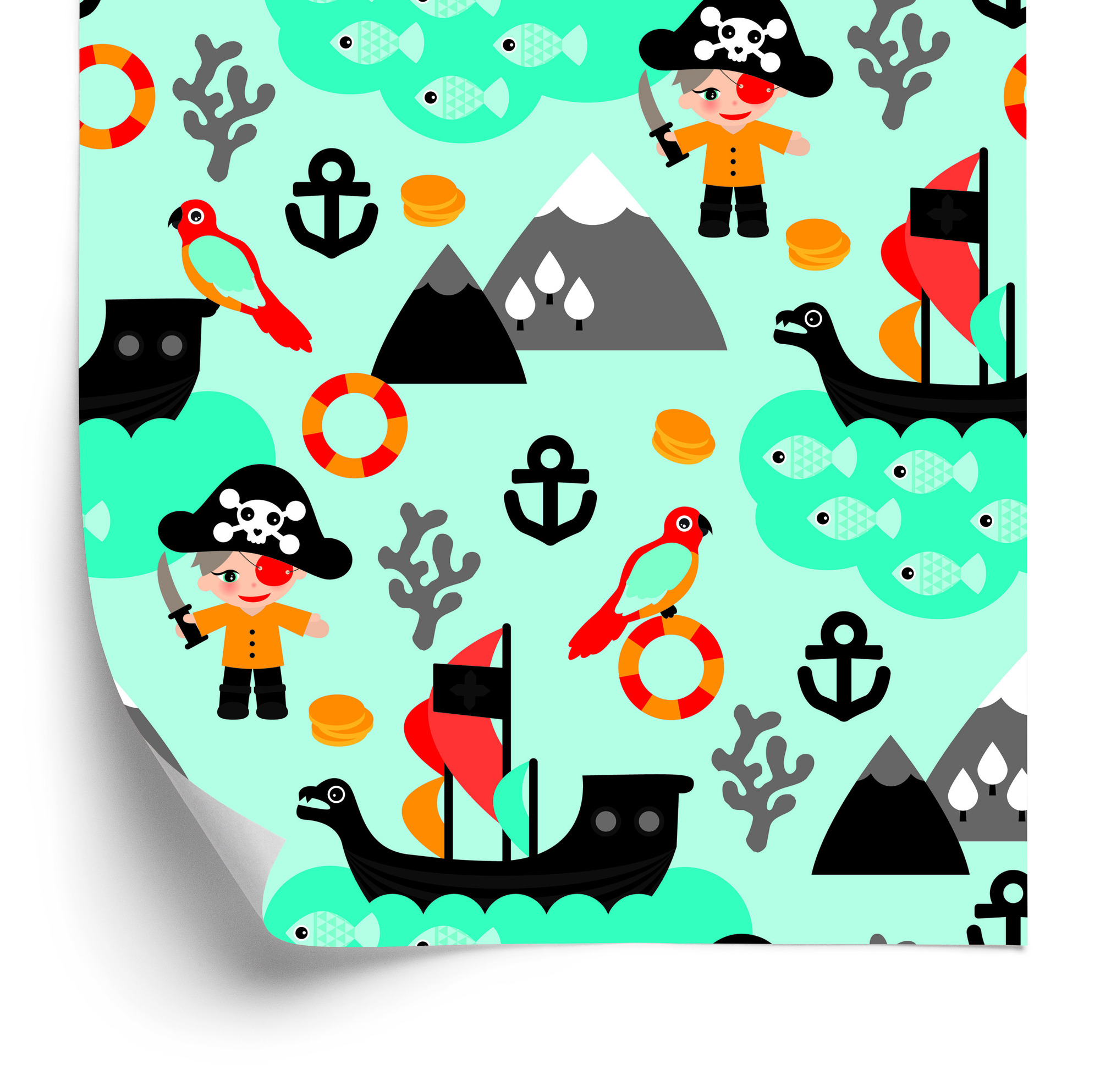Main Page » Tapeten fürs Kinderzimmer » Tapete für Jungen, Meer, Vögel, Piratenschiffe 1 Rolle