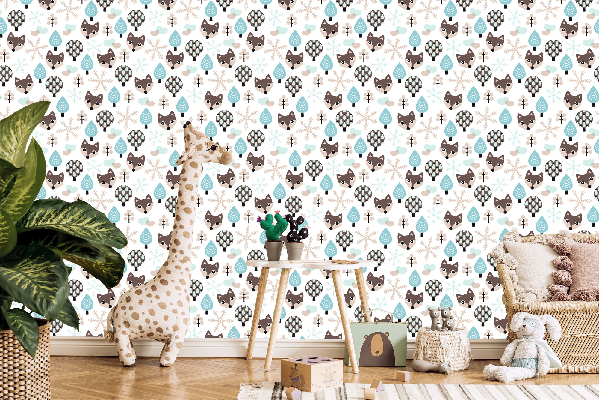 Tapete für Jungen, Tiere, Bäume, Herzen 1 Rolle