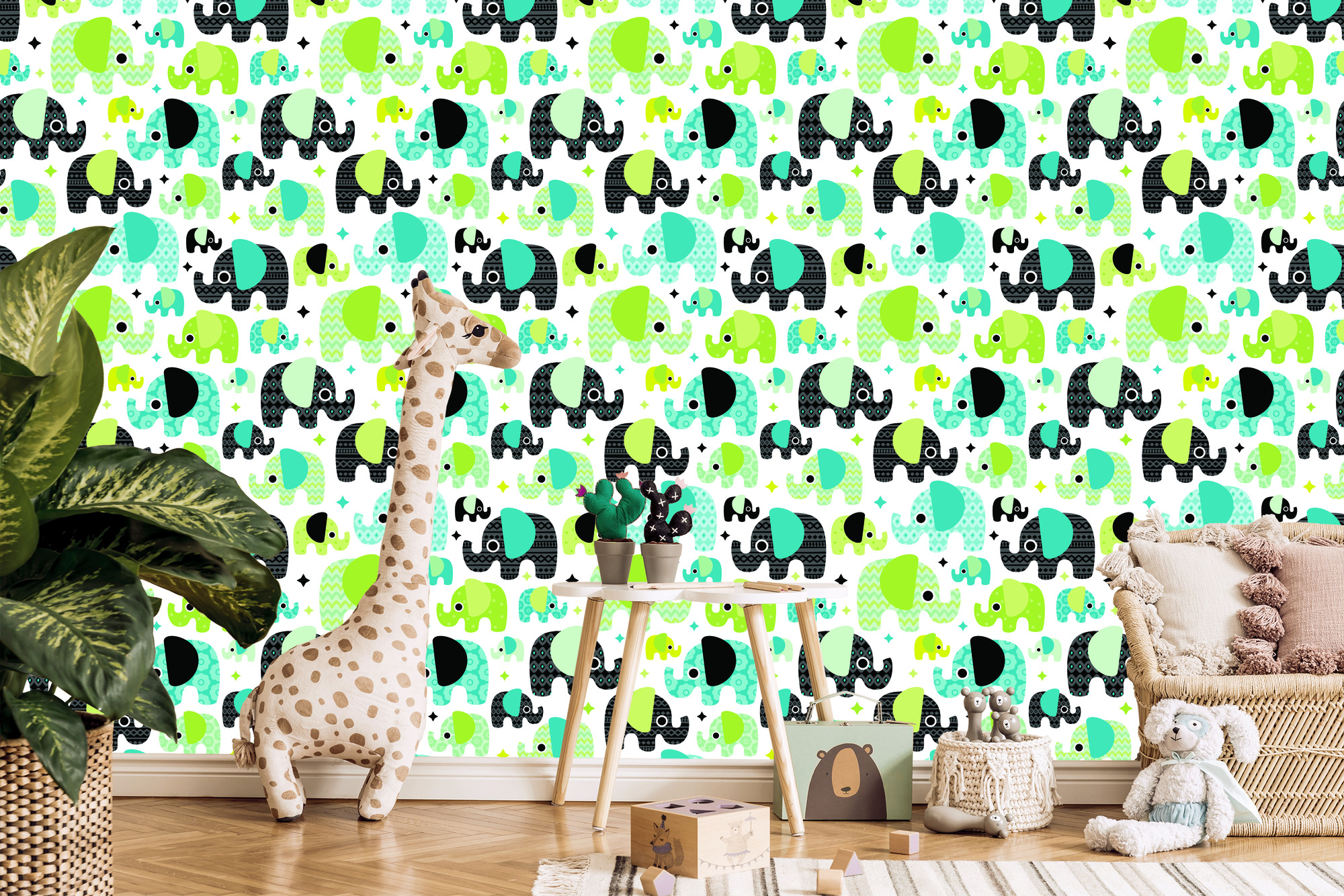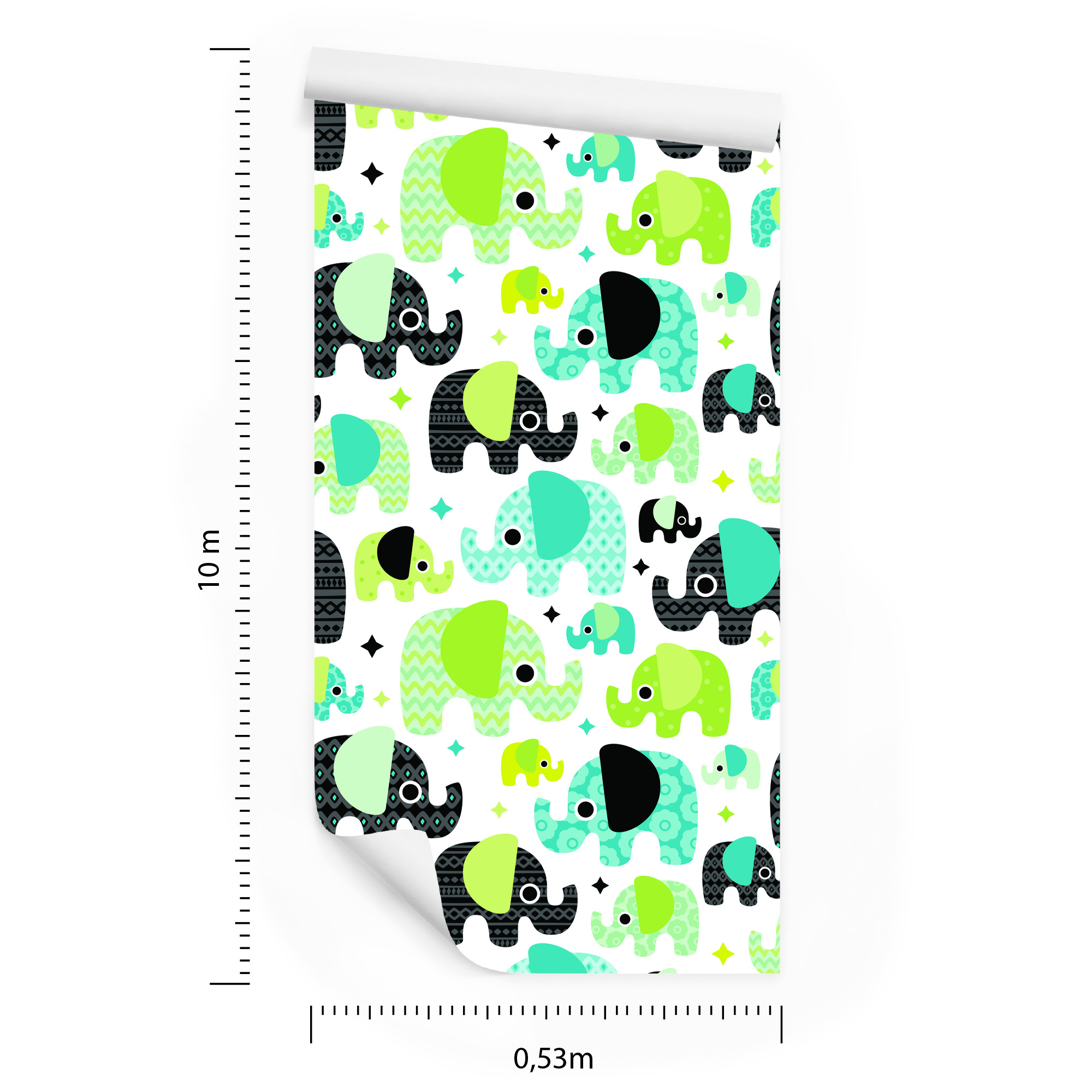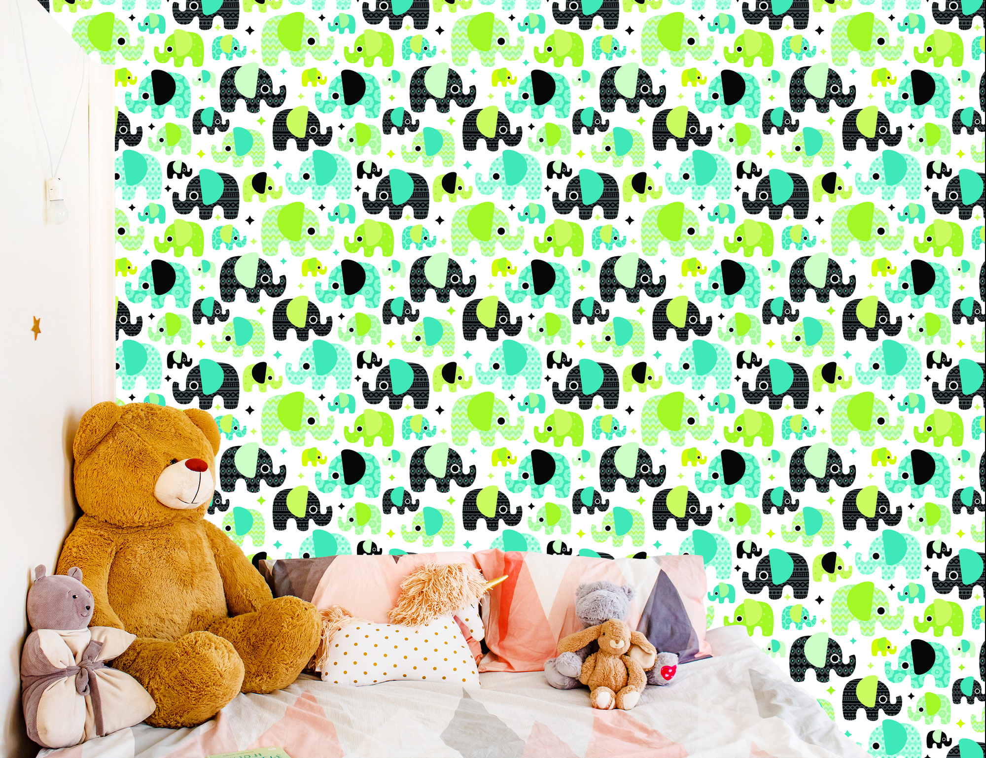 Tapete für Jungenzimmer, bunte Elefanten, 1 Rolle