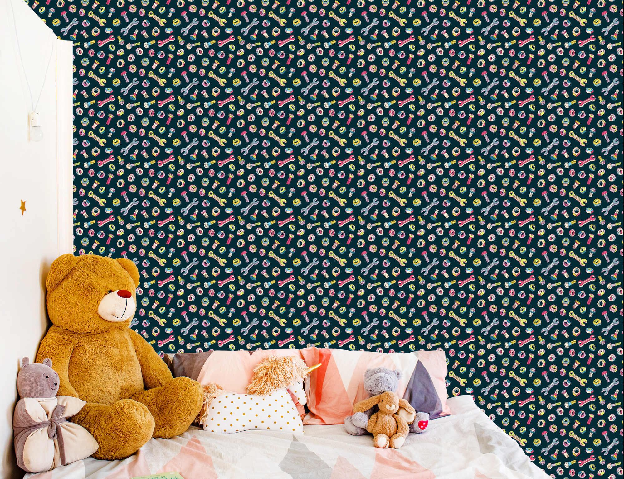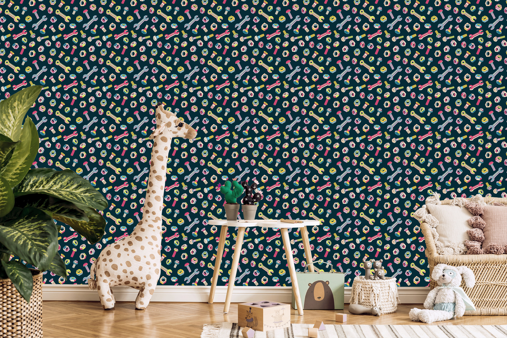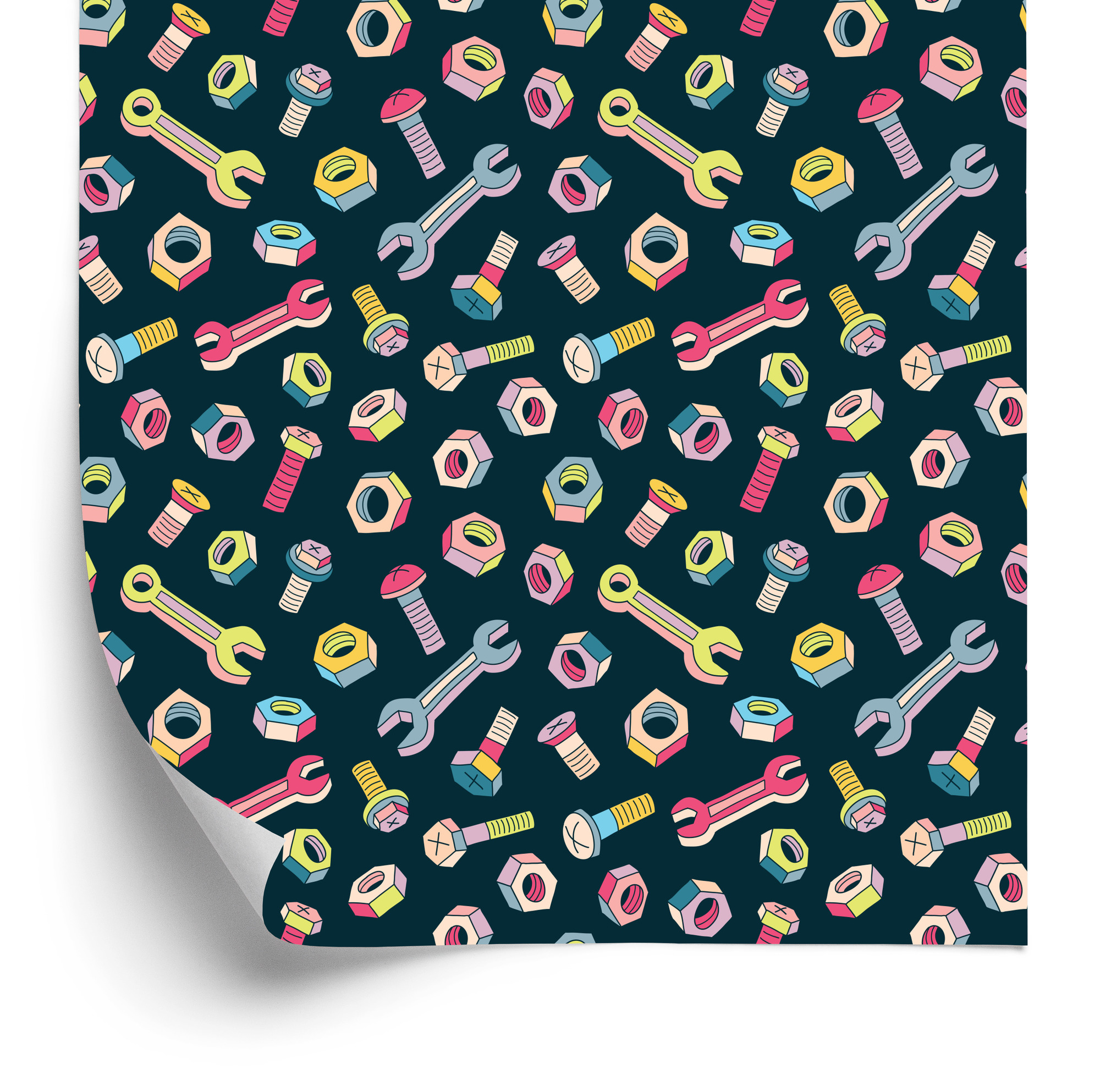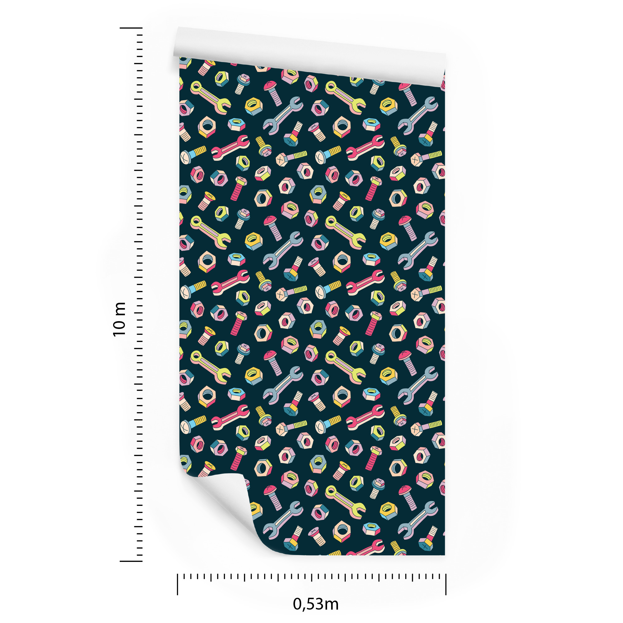 Tapete für Kinder – Bunte Schrauben und Schraubenschlüssel, 1 Rolle