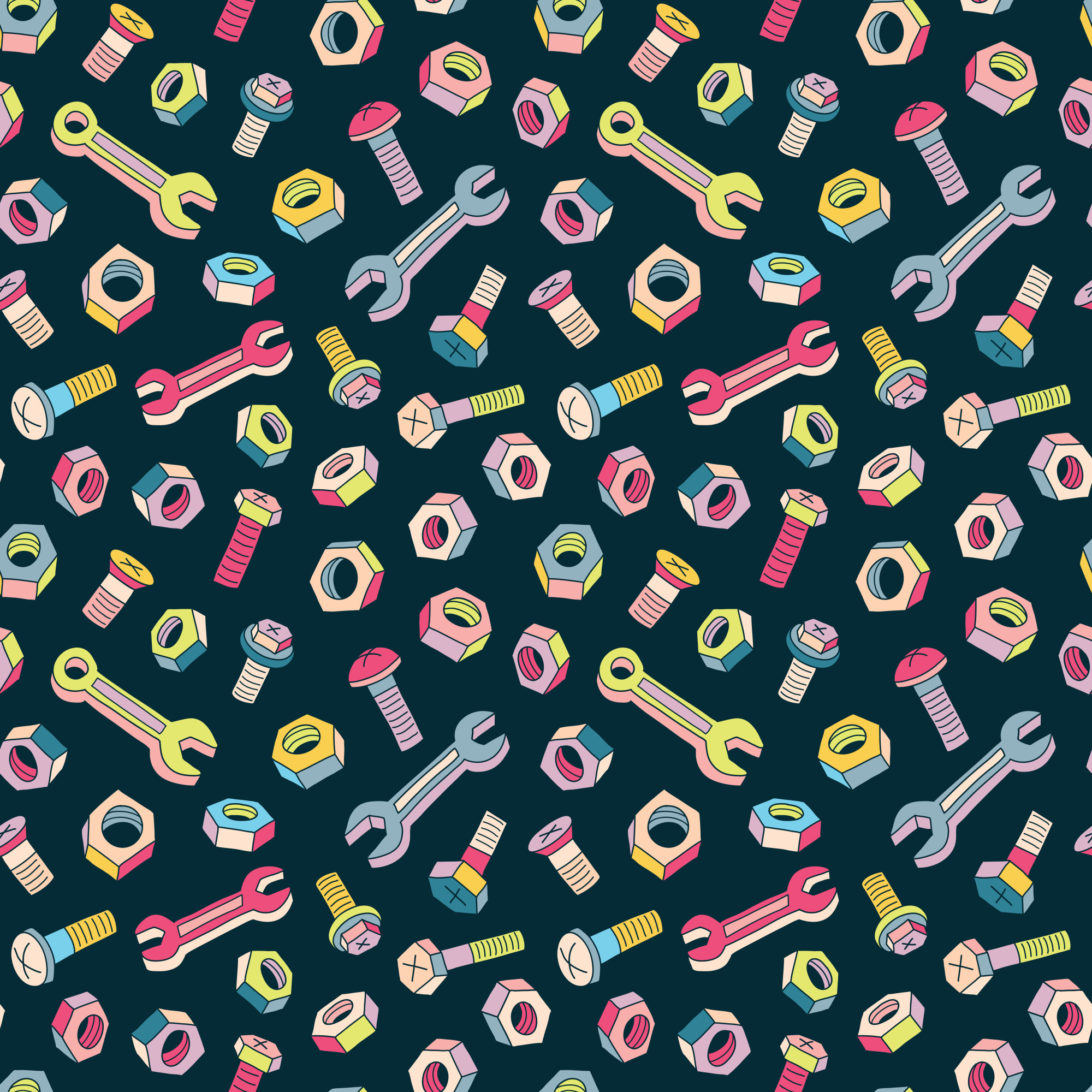 Main Page » Tapeten fürs Kinderzimmer » Tapete für Kinder – Bunte Schrauben und Schraubenschlüssel, 1 Rolle