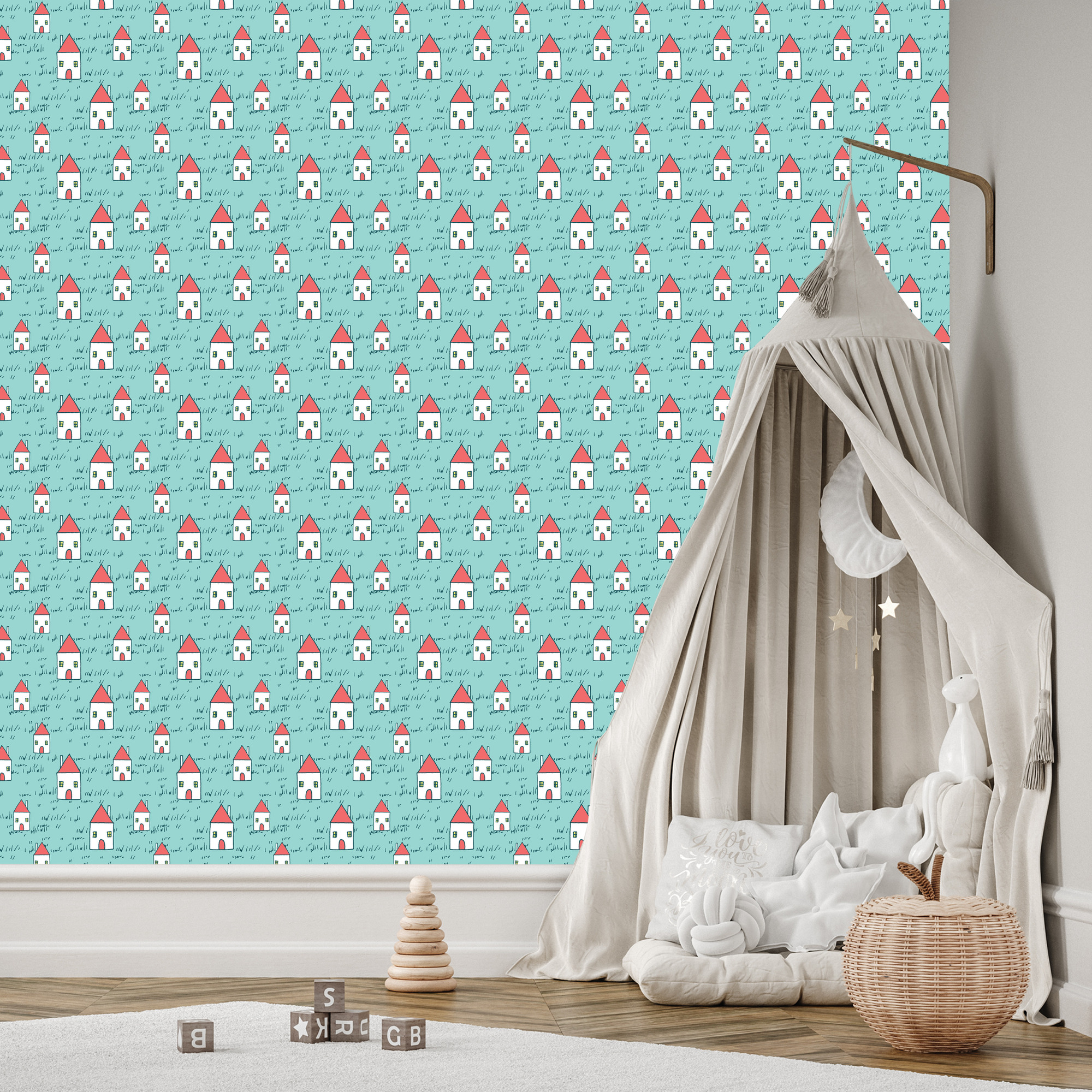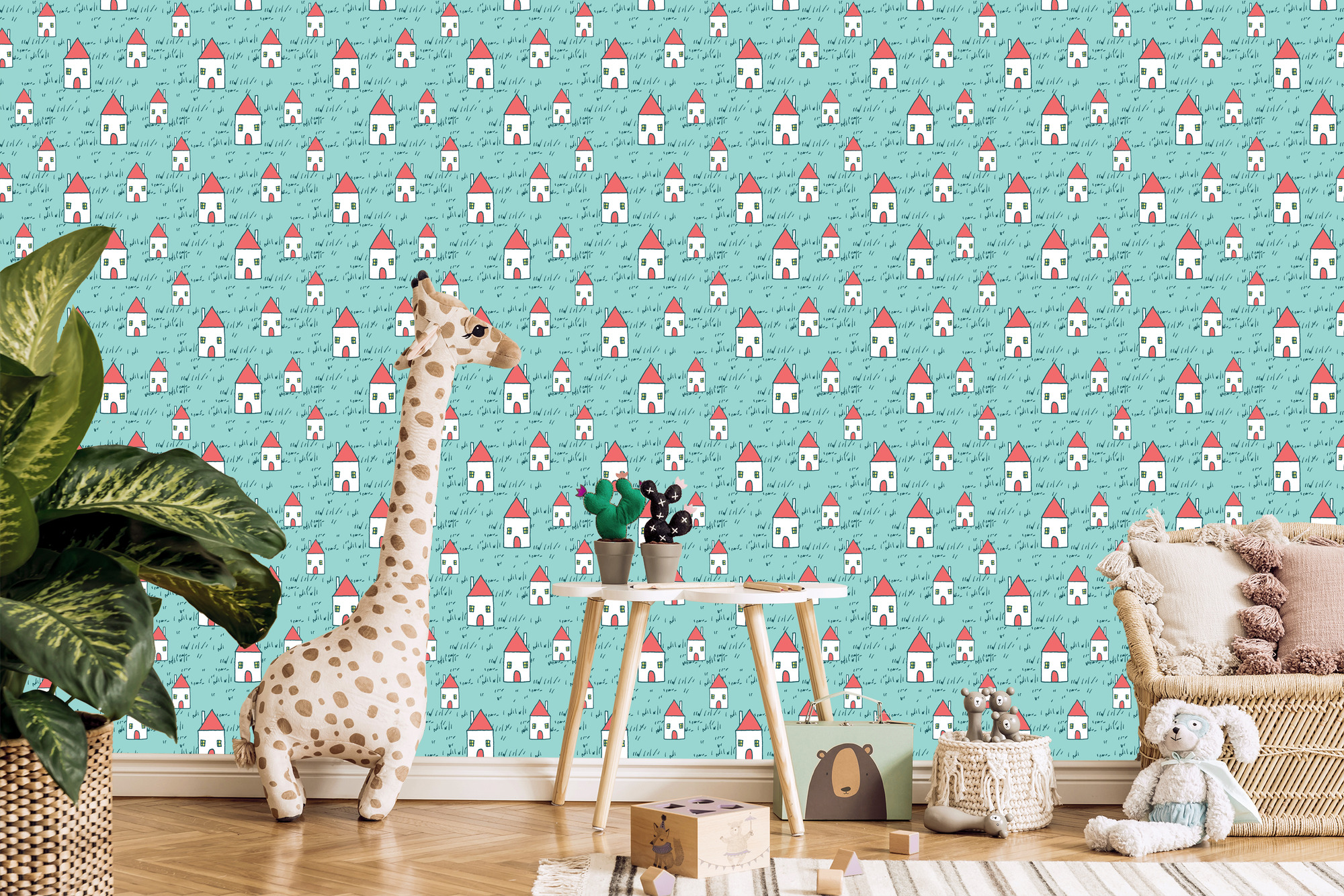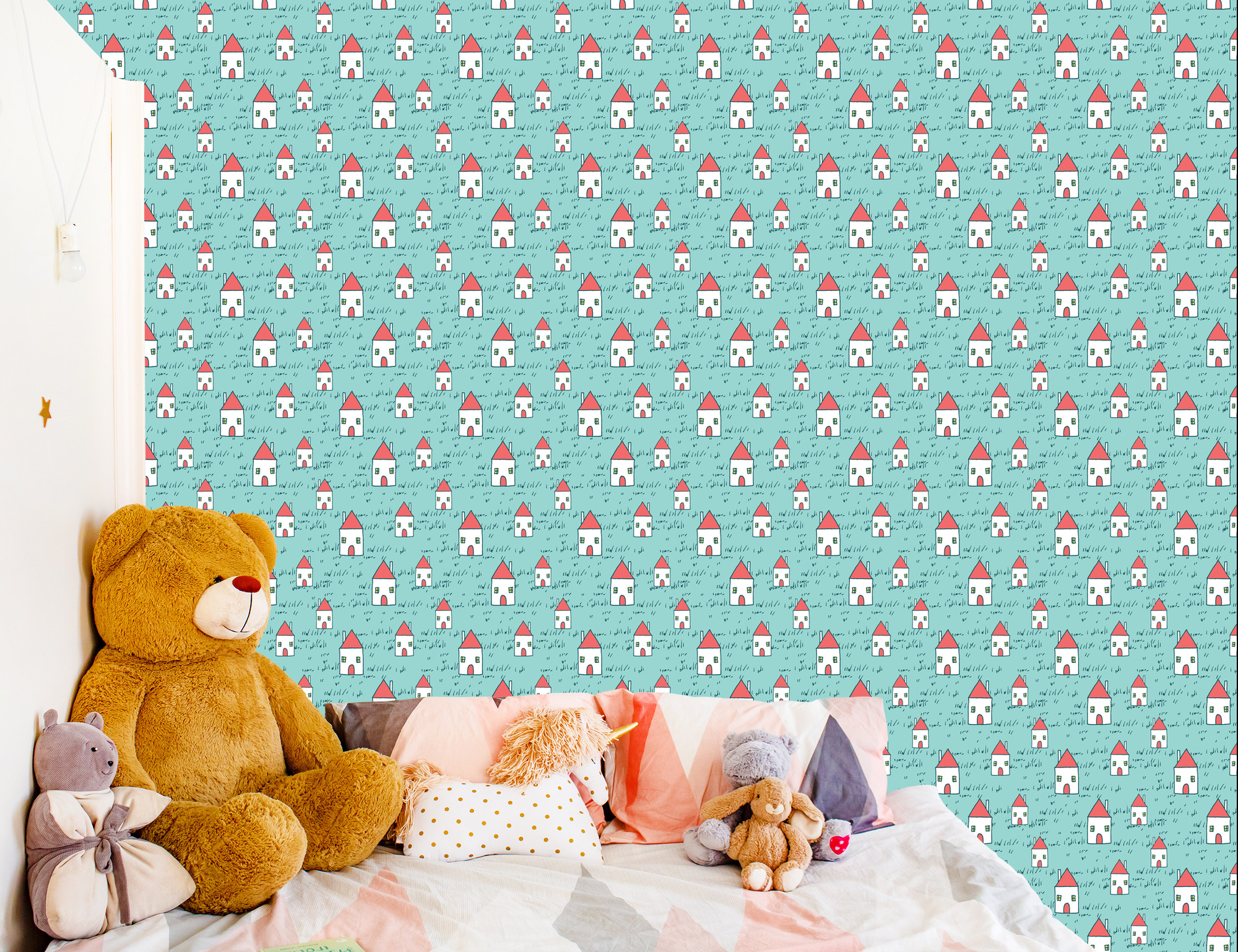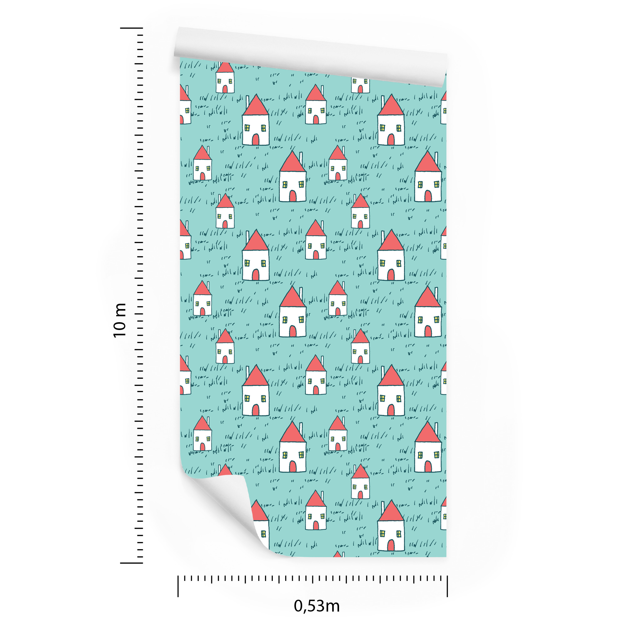 Main Page » Tapeten fürs Kinderzimmer » Tapete für Kinder – Häuser mit roten Dächern