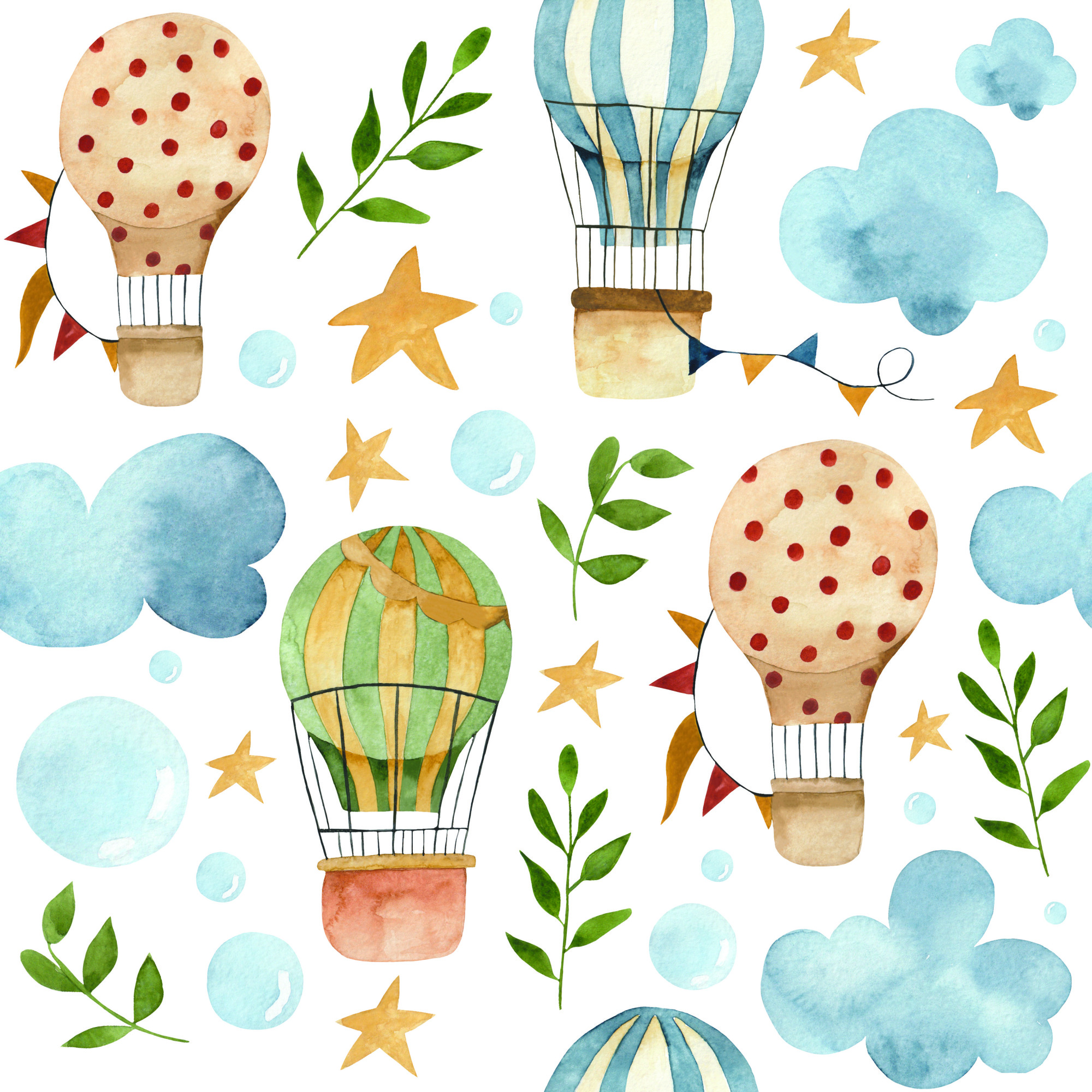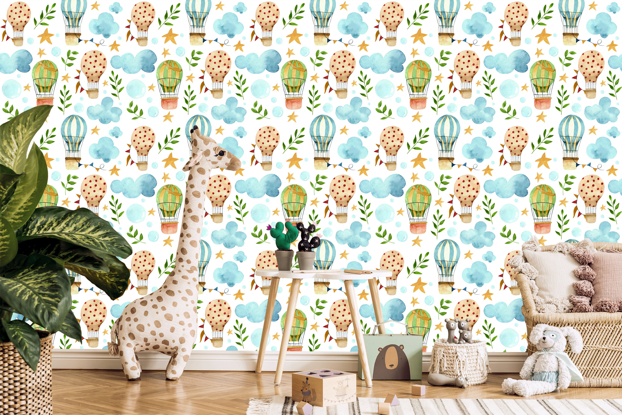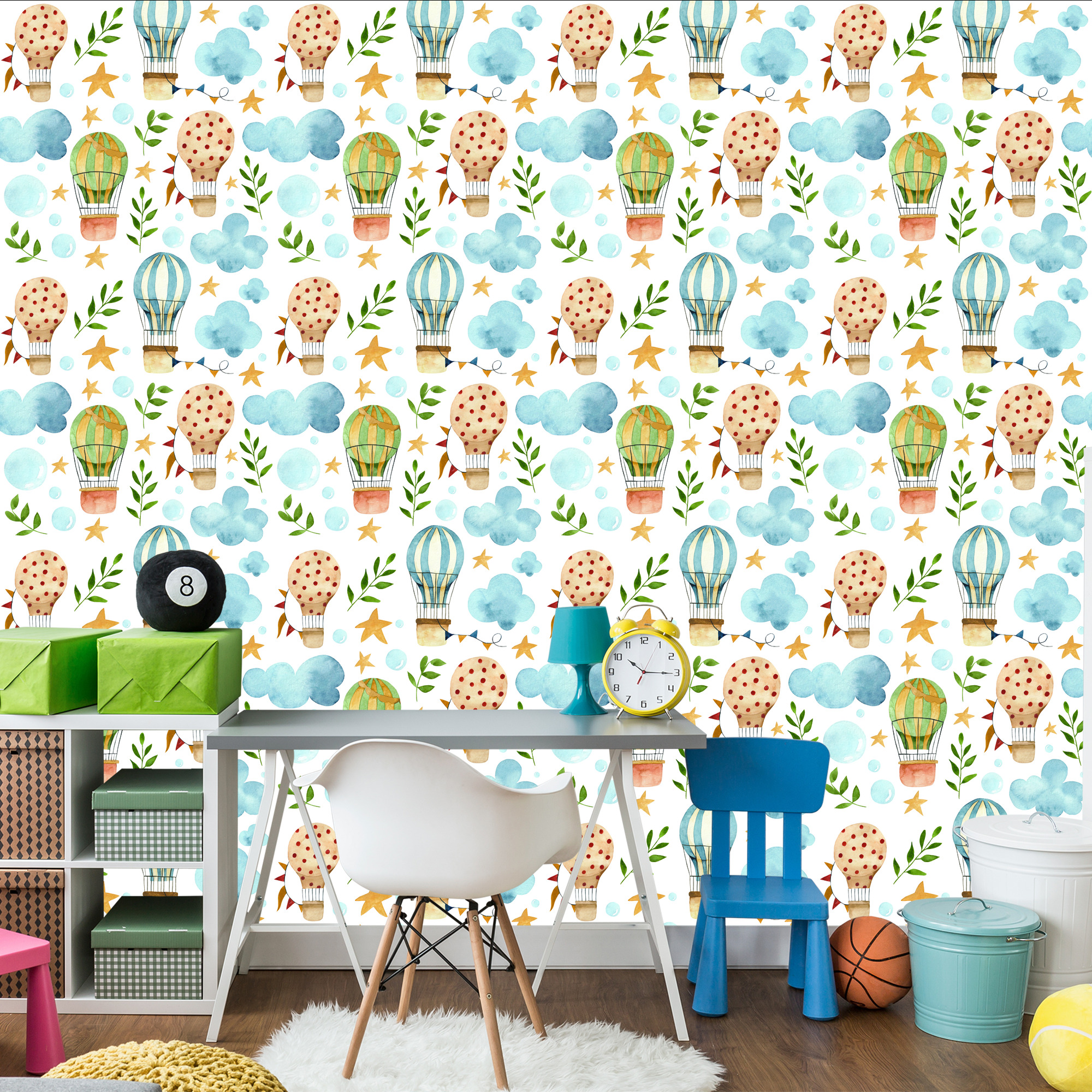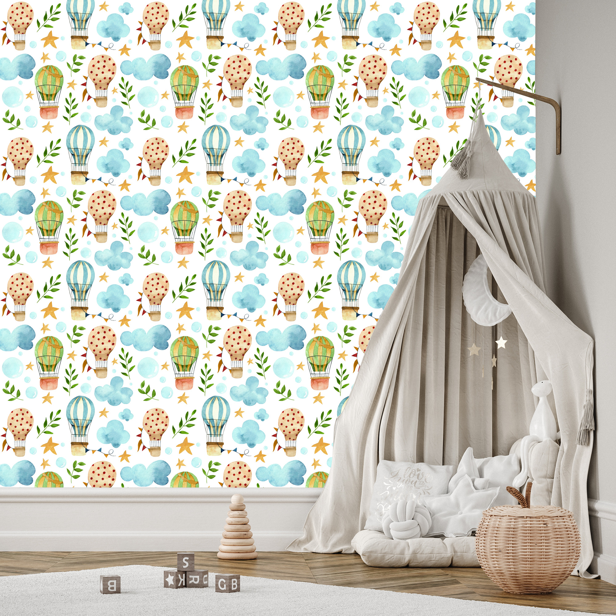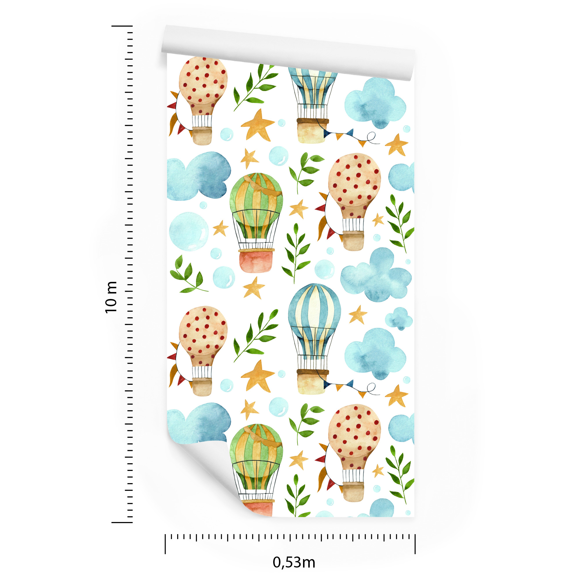 Tapete für Kinder, Luftballons Wolken Sterne Pflanzen 1 Rolle