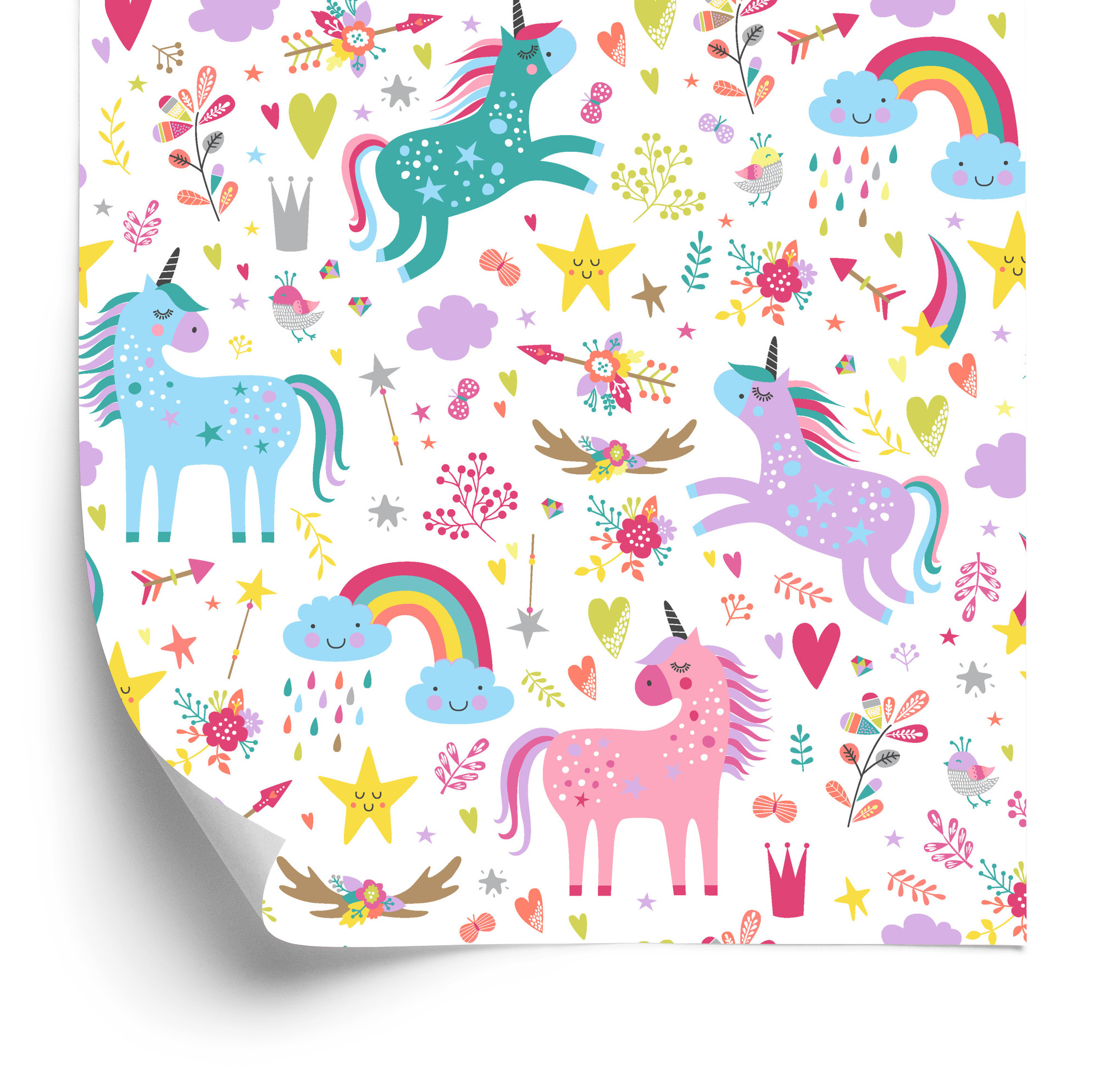 Main Page » Tapeten fürs Kinderzimmer » Tapete für Kinder – Regenbogen-Einhörner im skandinavischen Stil
