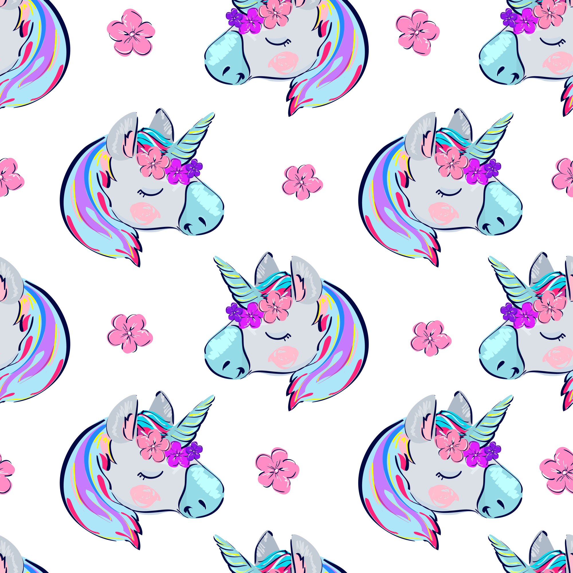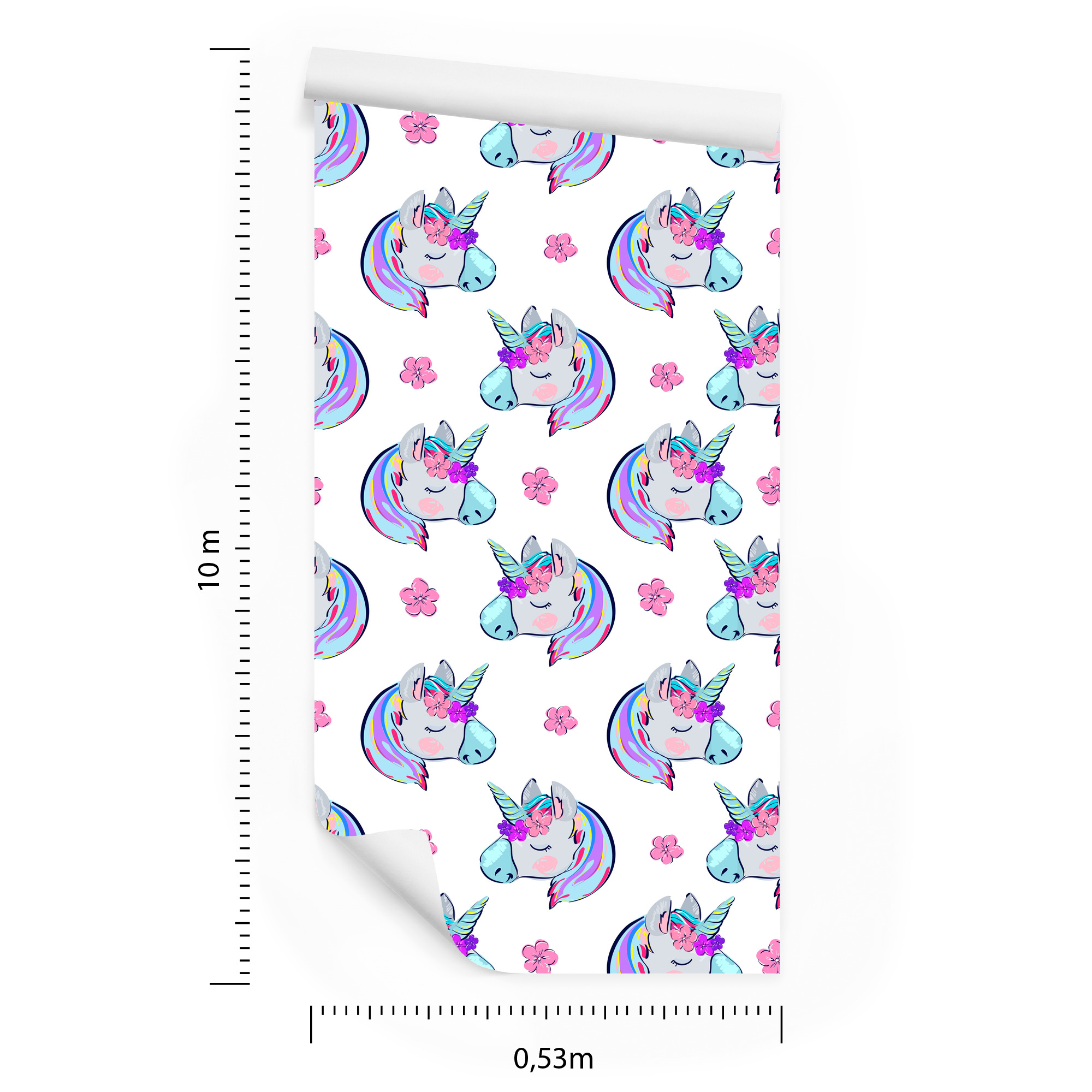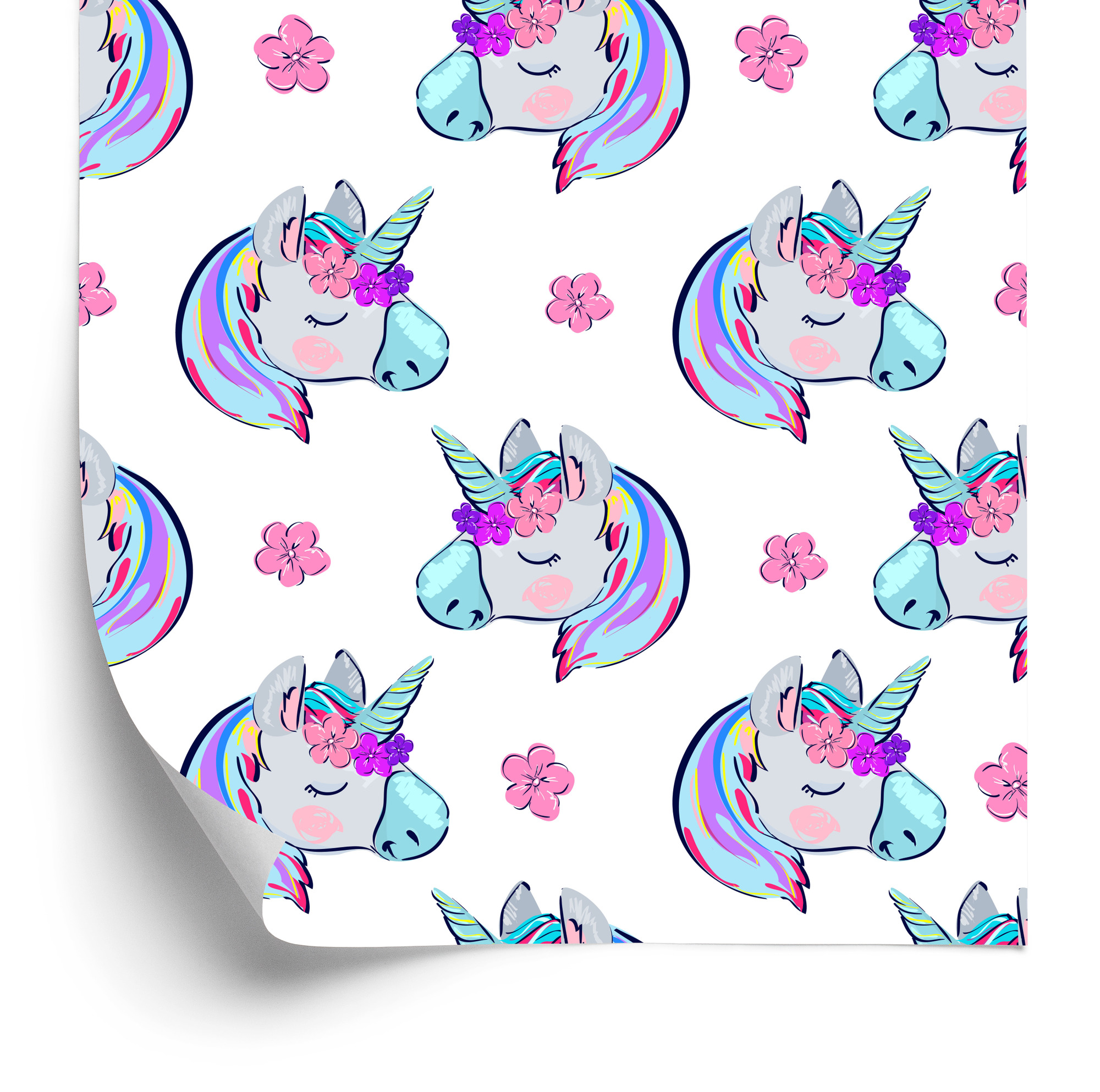 Main Page » Tapeten fürs Kinderzimmer » Tapete für Kinder – Schlafende Einhörner vor einem Blumenhintergrund