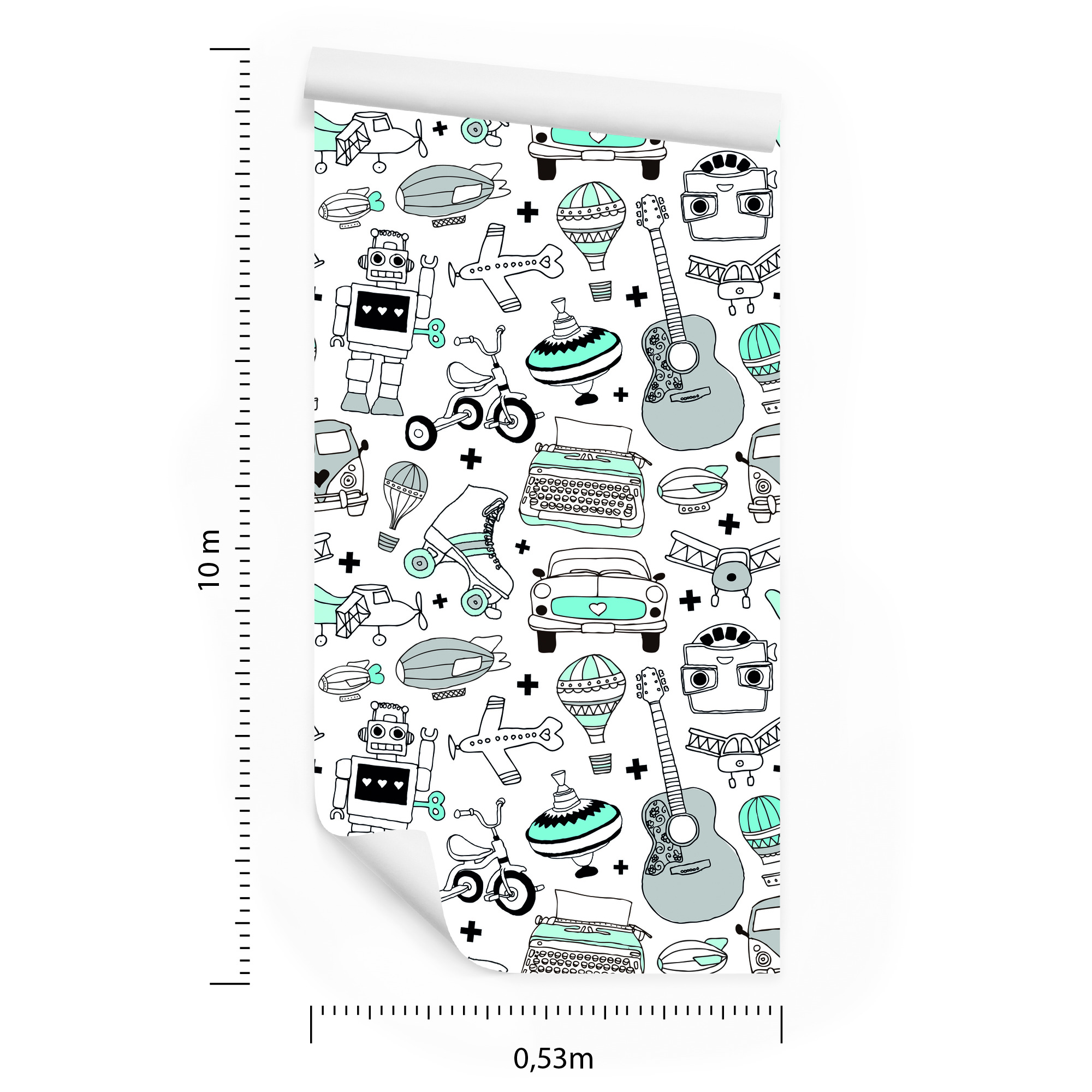 Tapete für Kinder – Spielzeug im Vintage-Stil 1 Rolle