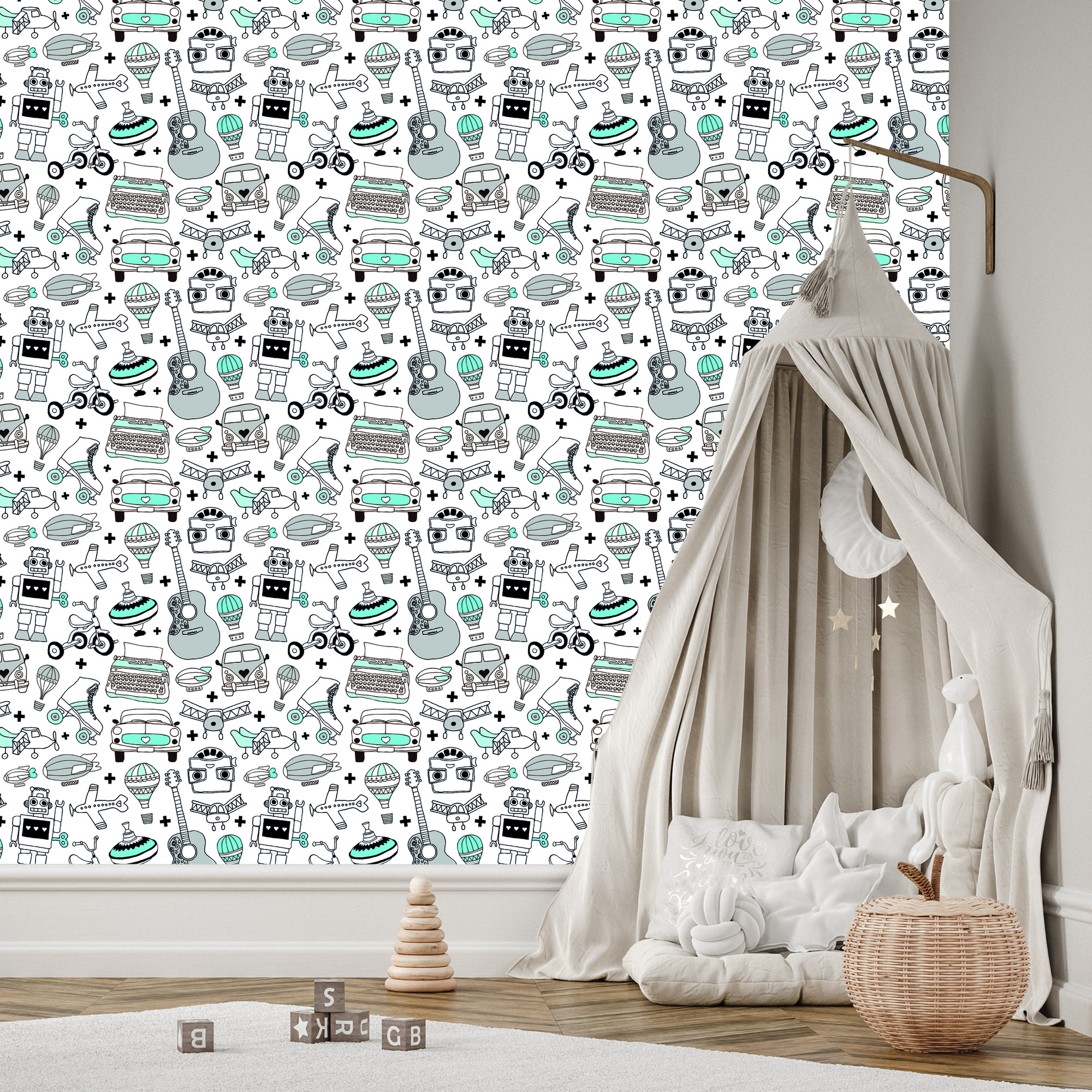Main Page » Tapeten fürs Kinderzimmer » Tapete für Kinder – Spielzeug im Vintage-Stil 1 Rolle