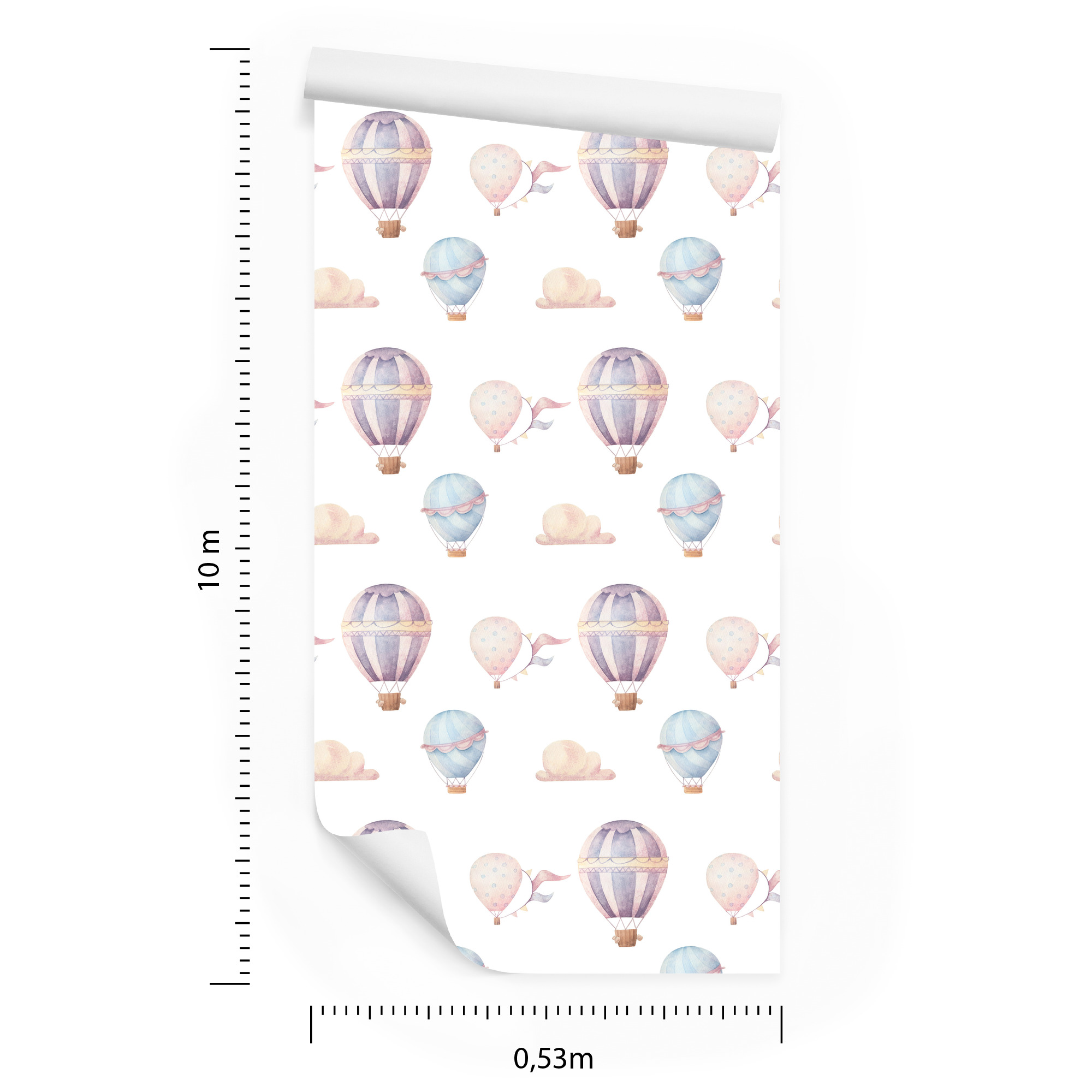 Tapete für Kinderzimmer, Pastellballons, Wolken 1 Rolle