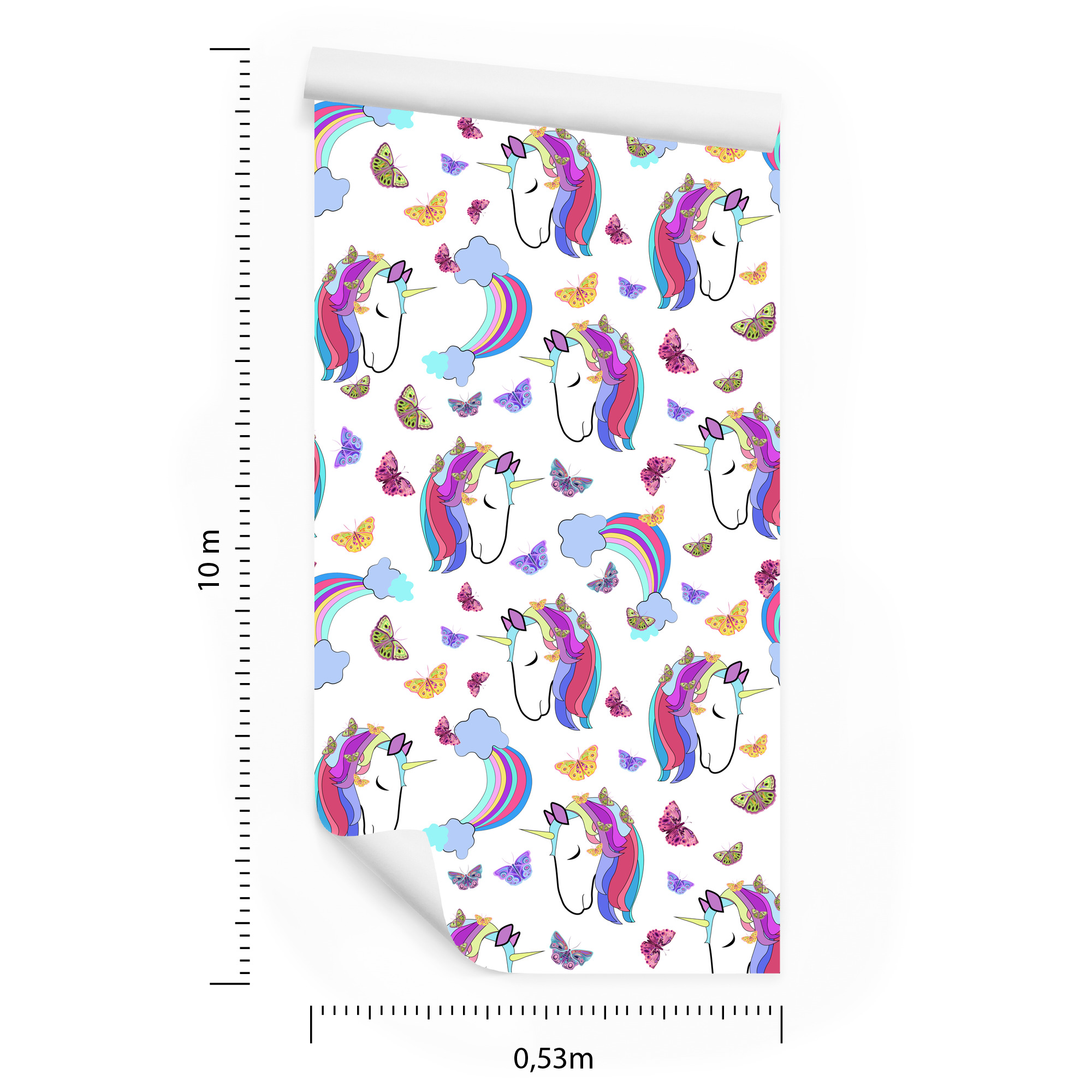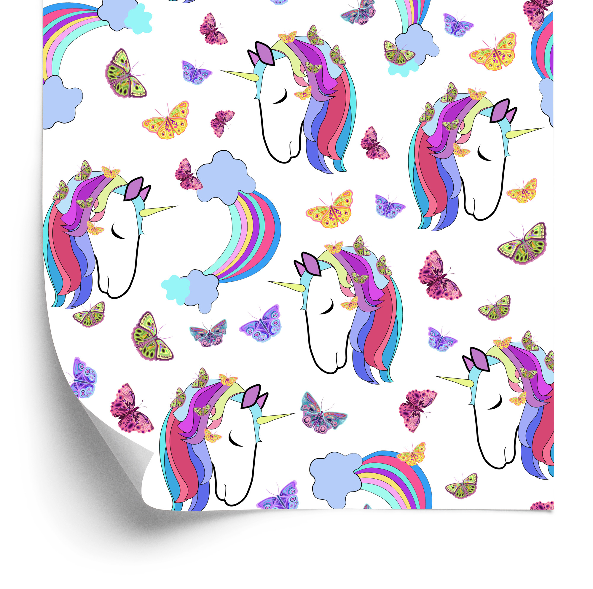 Main Page » Tapeten fürs Kinderzimmer » Tapete für Mädchen Bunte Einhörner Schmetterlinge