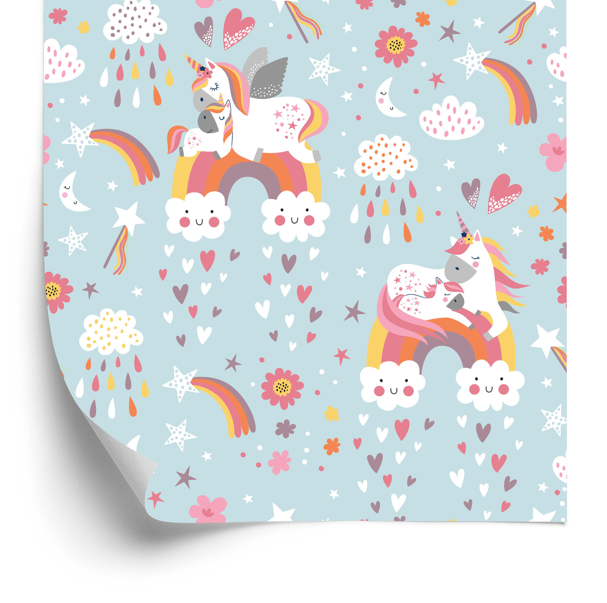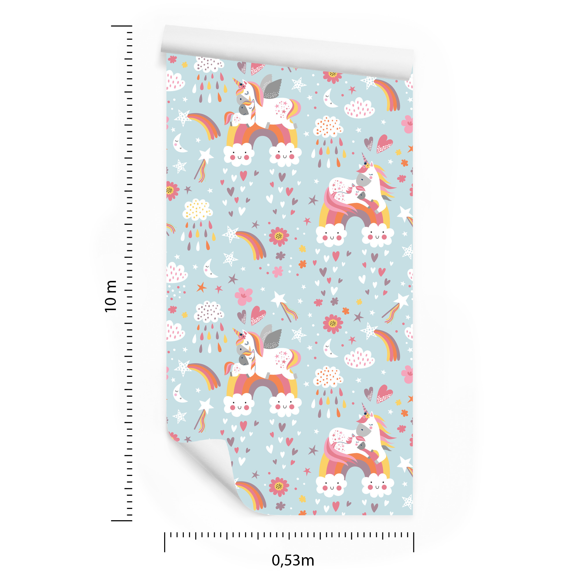 Tapete für Mädchen Einhörner, Wolken, Herzen 1 Rolle