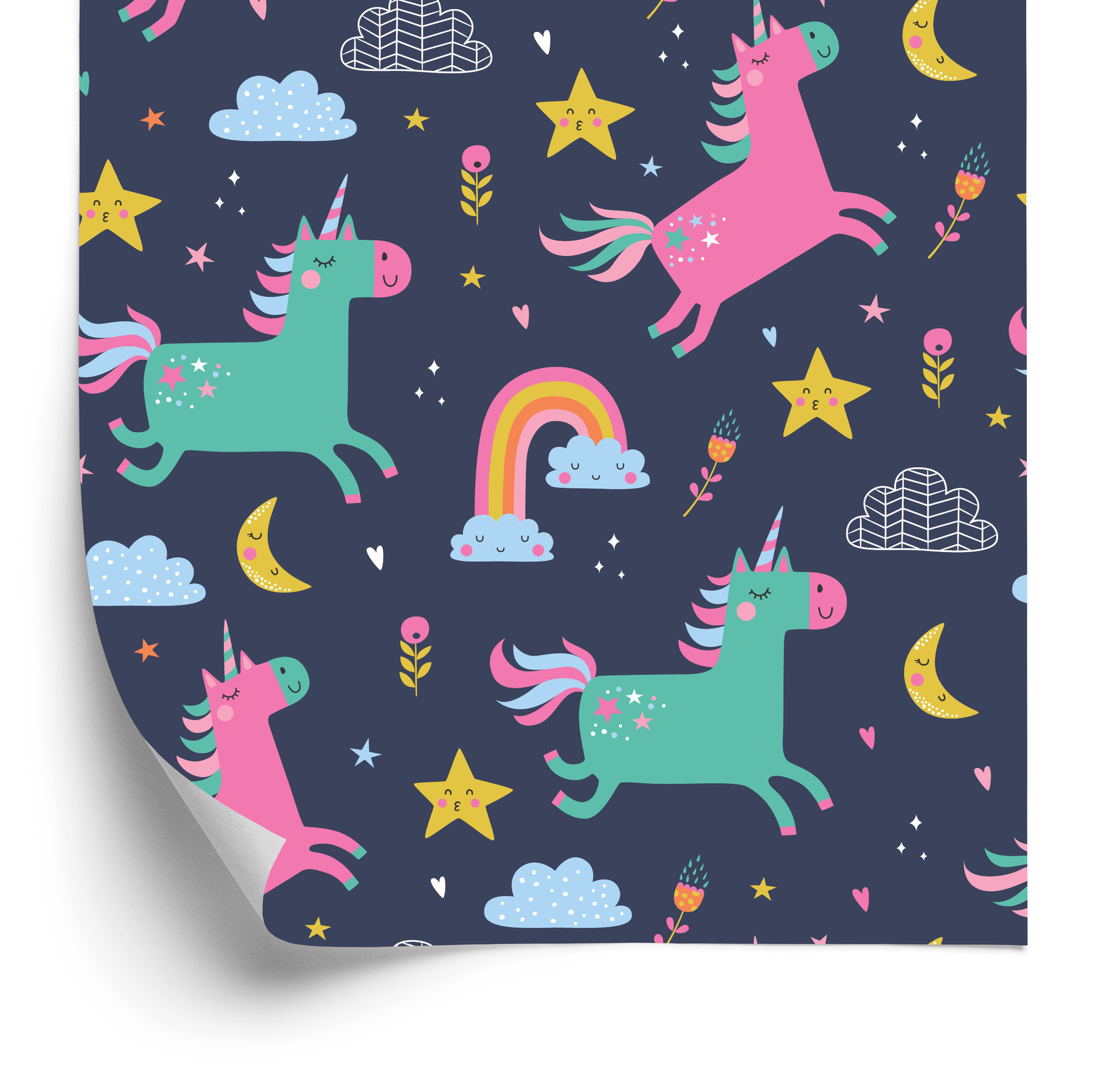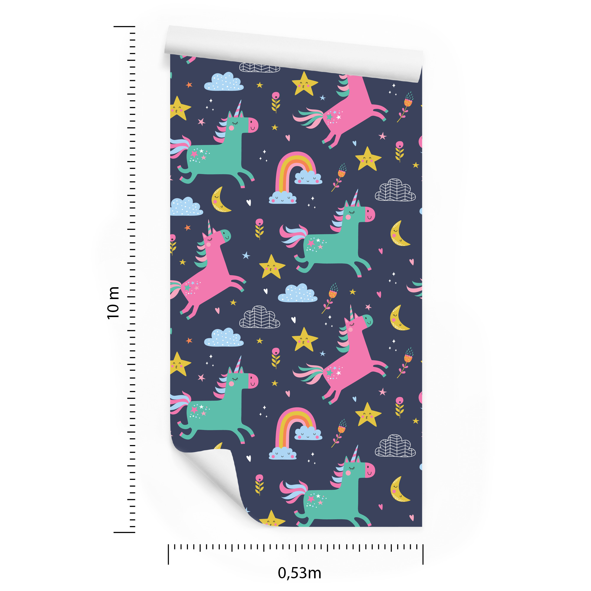 Tapete für Mädchen mit bunten Einhörnern und Regenbogen 1 Rolle