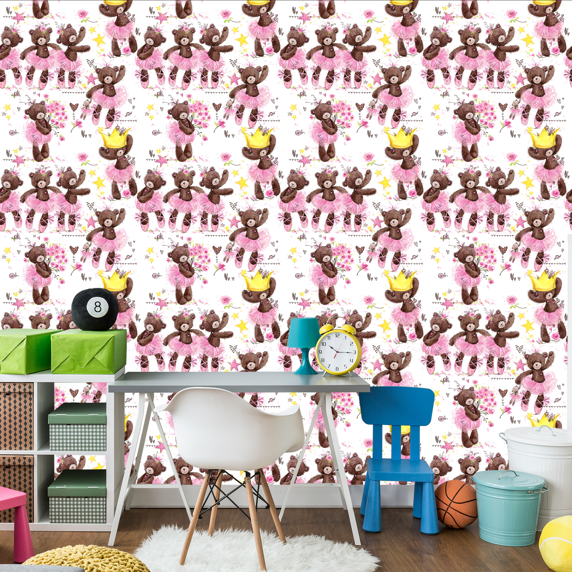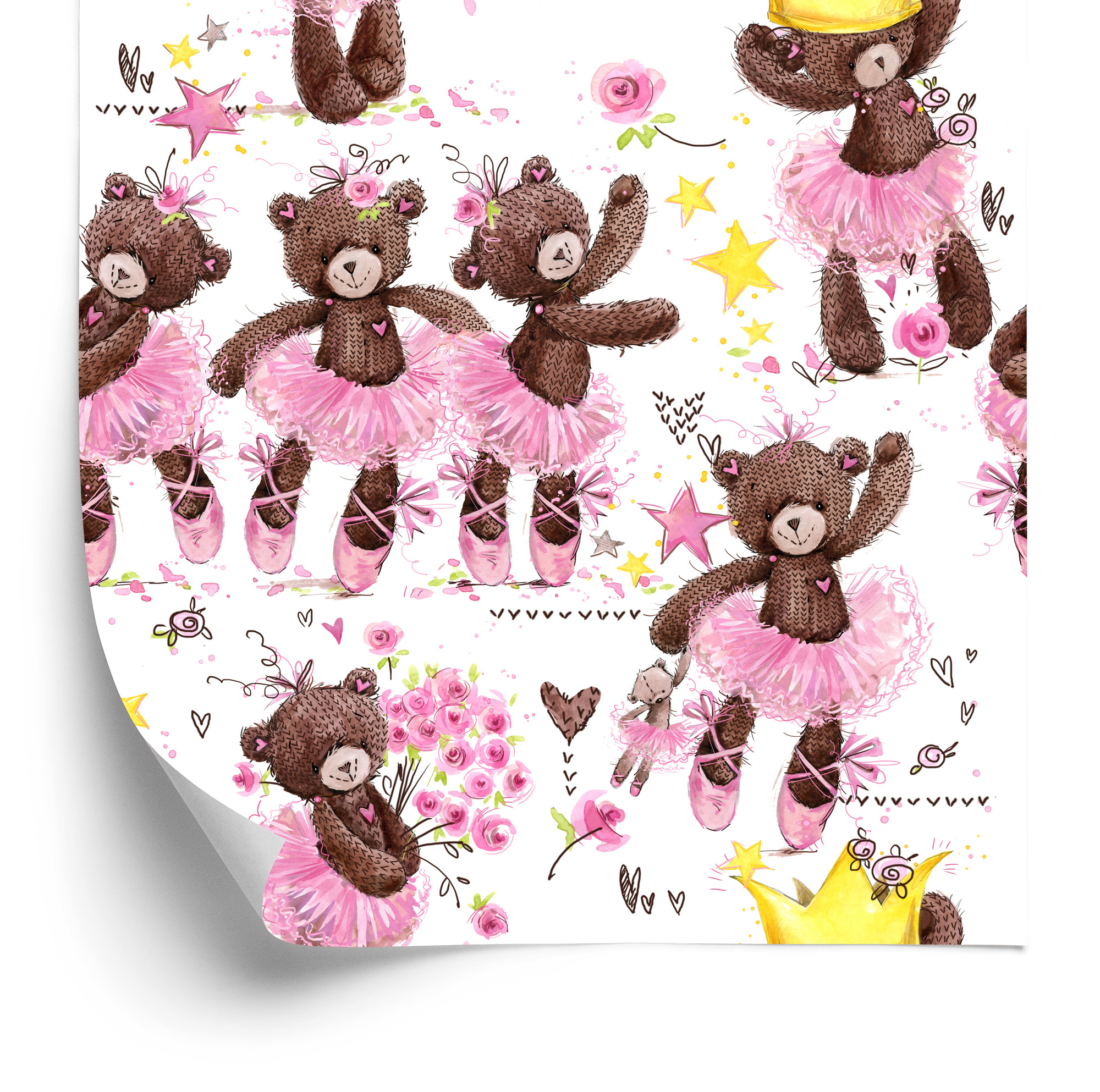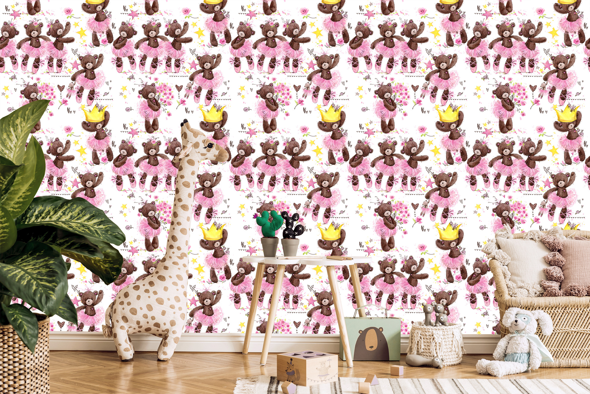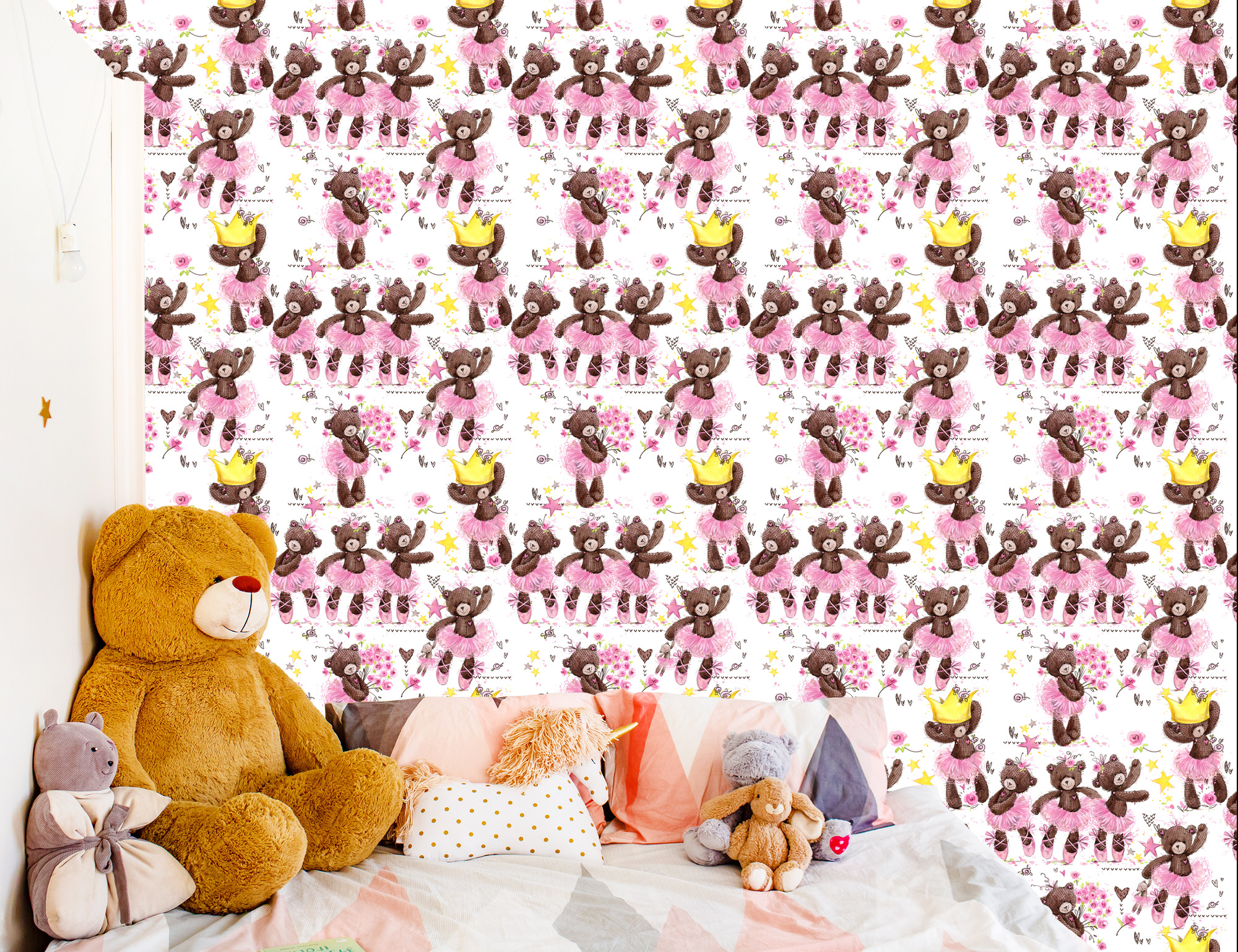 Tapete für Mädchen Teddybären, Sterne, Blumen