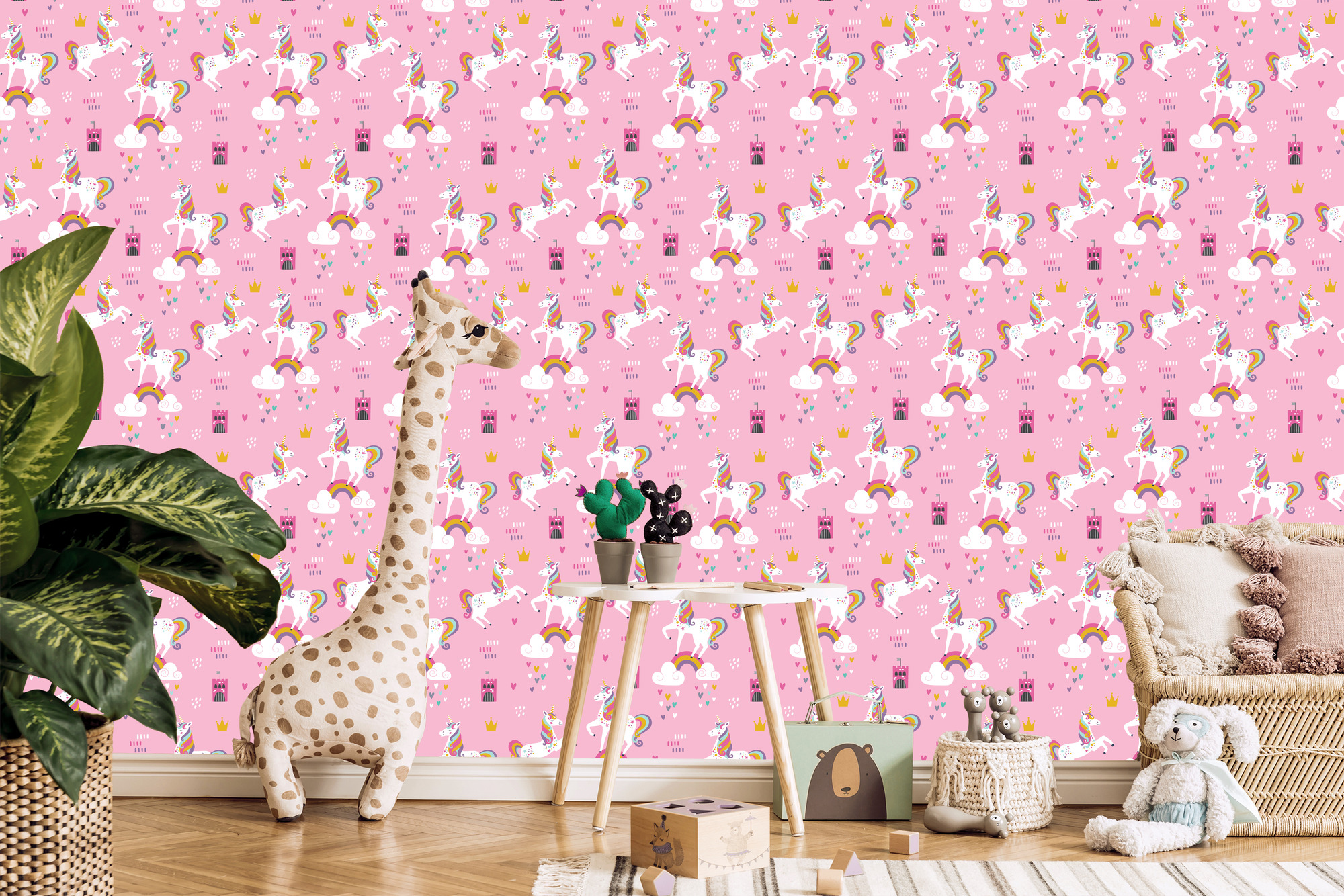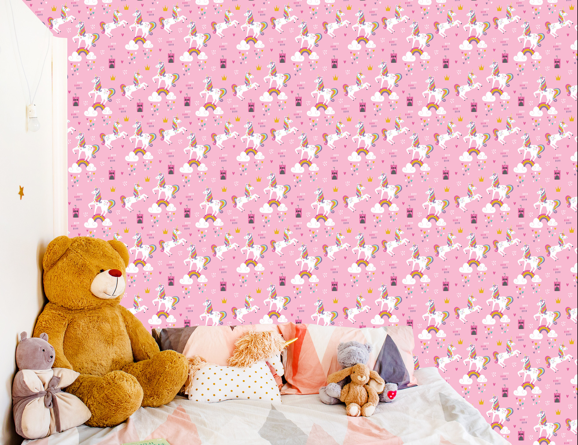 Tapete für Mädchenzimmer, Einhörner, Wolken 1 Rolle