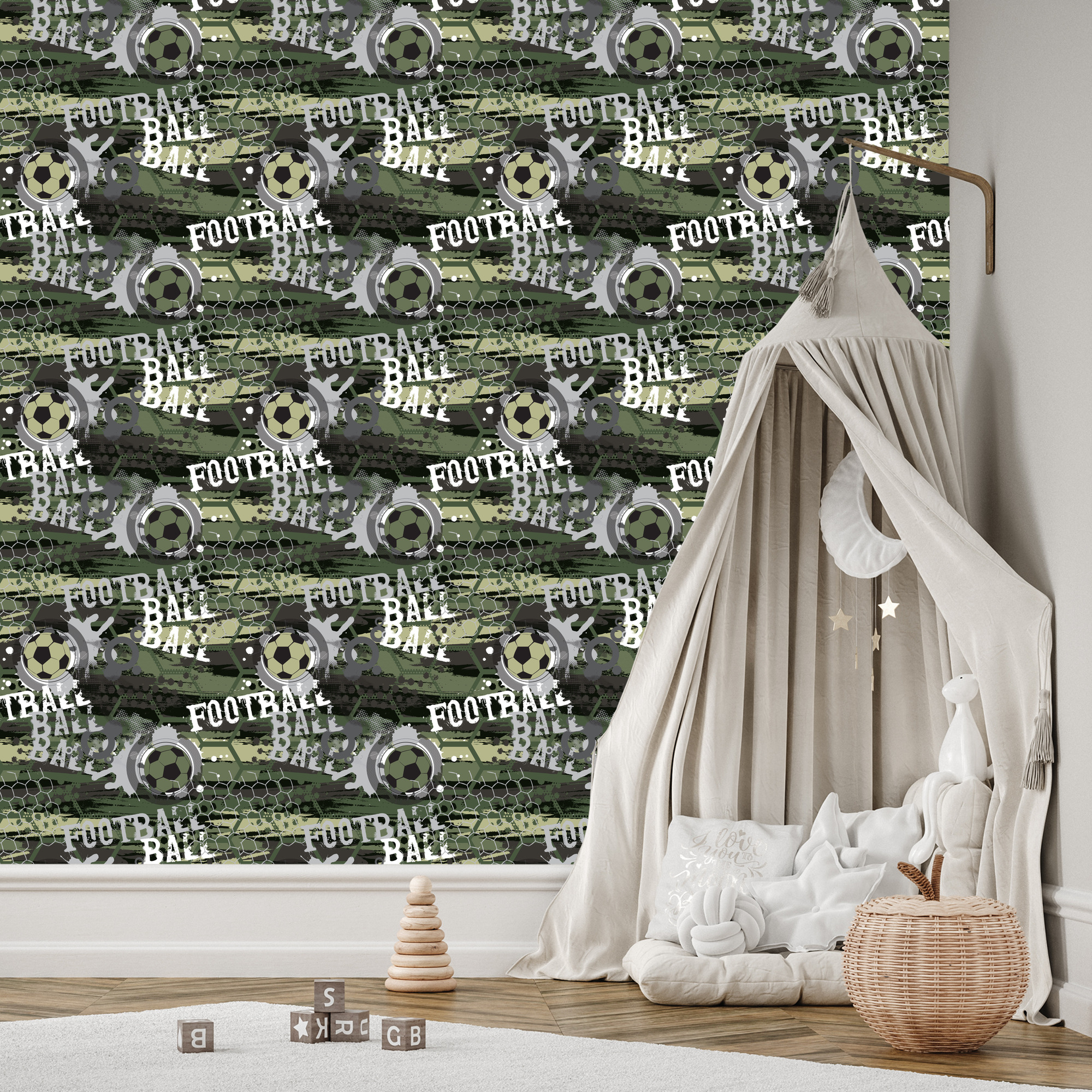 Main Page » Tapeten fürs Kinderzimmer » Tapete Fußball Schriftzüge 1 Rolle