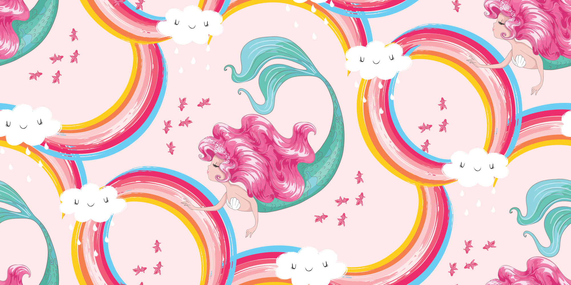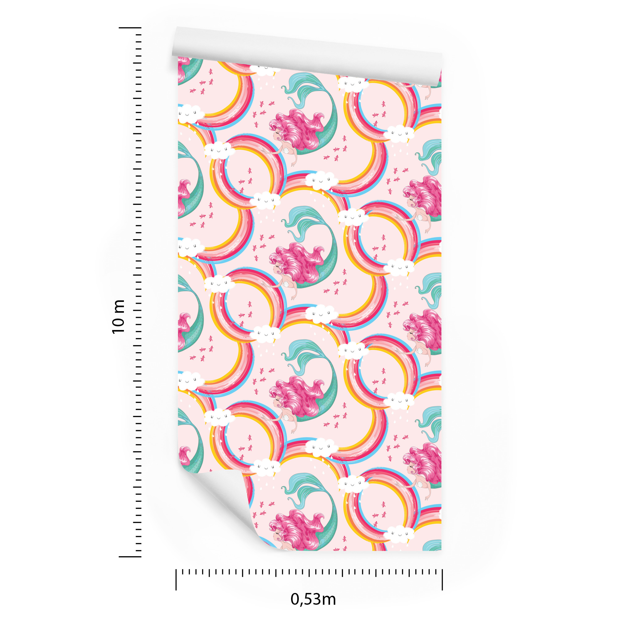 Main Page » Tapeten fürs Kinderzimmer » Tapete Meerjungfrauen, Wolken, Regenbogen, Mädchenzimmer 1 Rolle