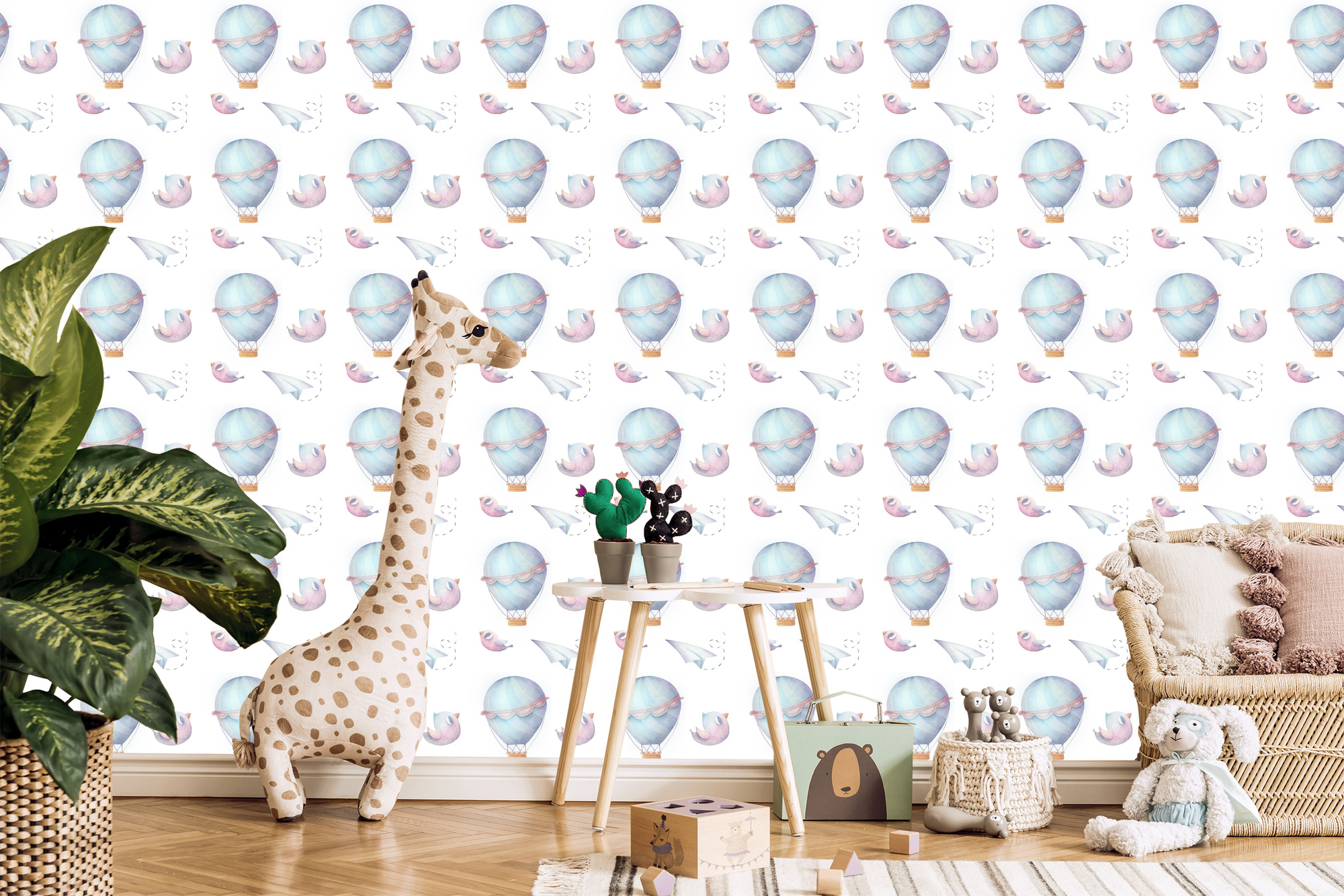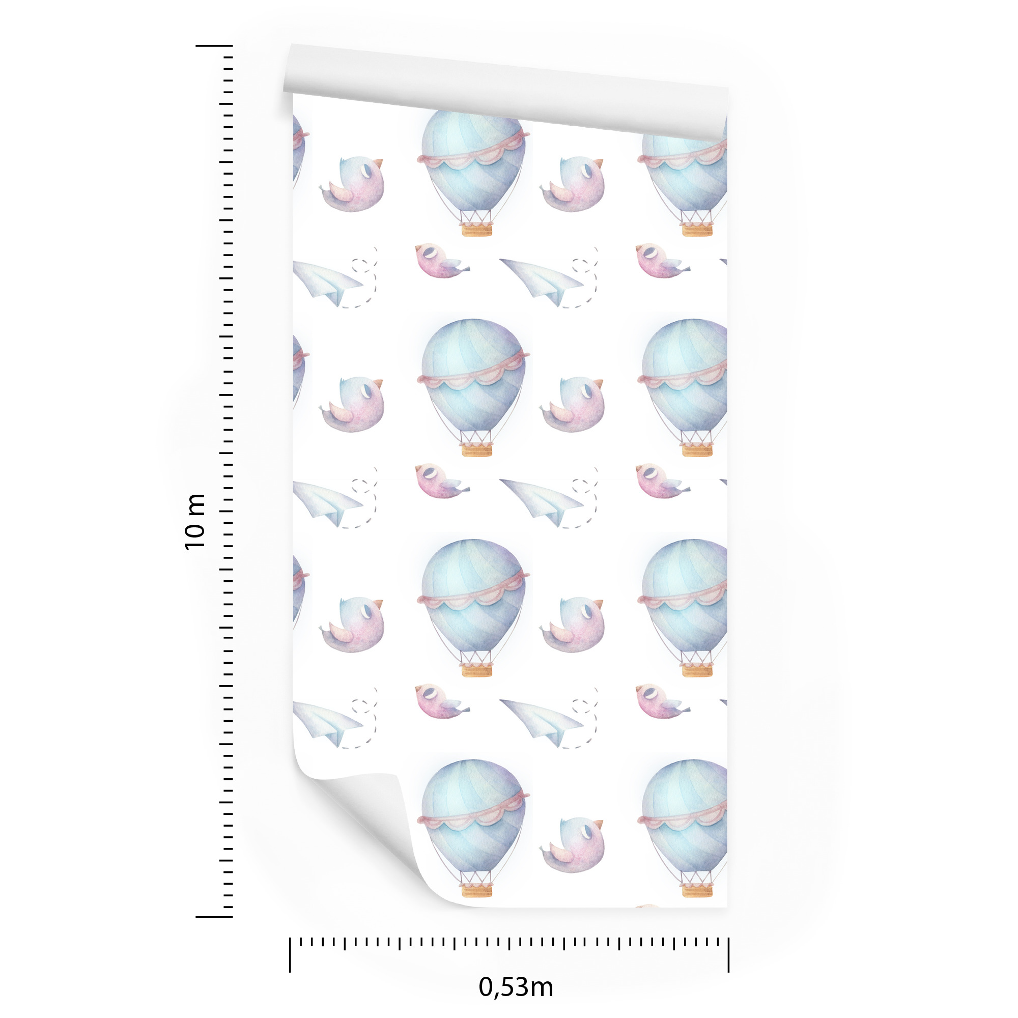 Main Page » Tapeten fürs Kinderzimmer » Tapete mit Ballons, Wolken, Vögeln, für das Kinderzimmer 1 Rolle
