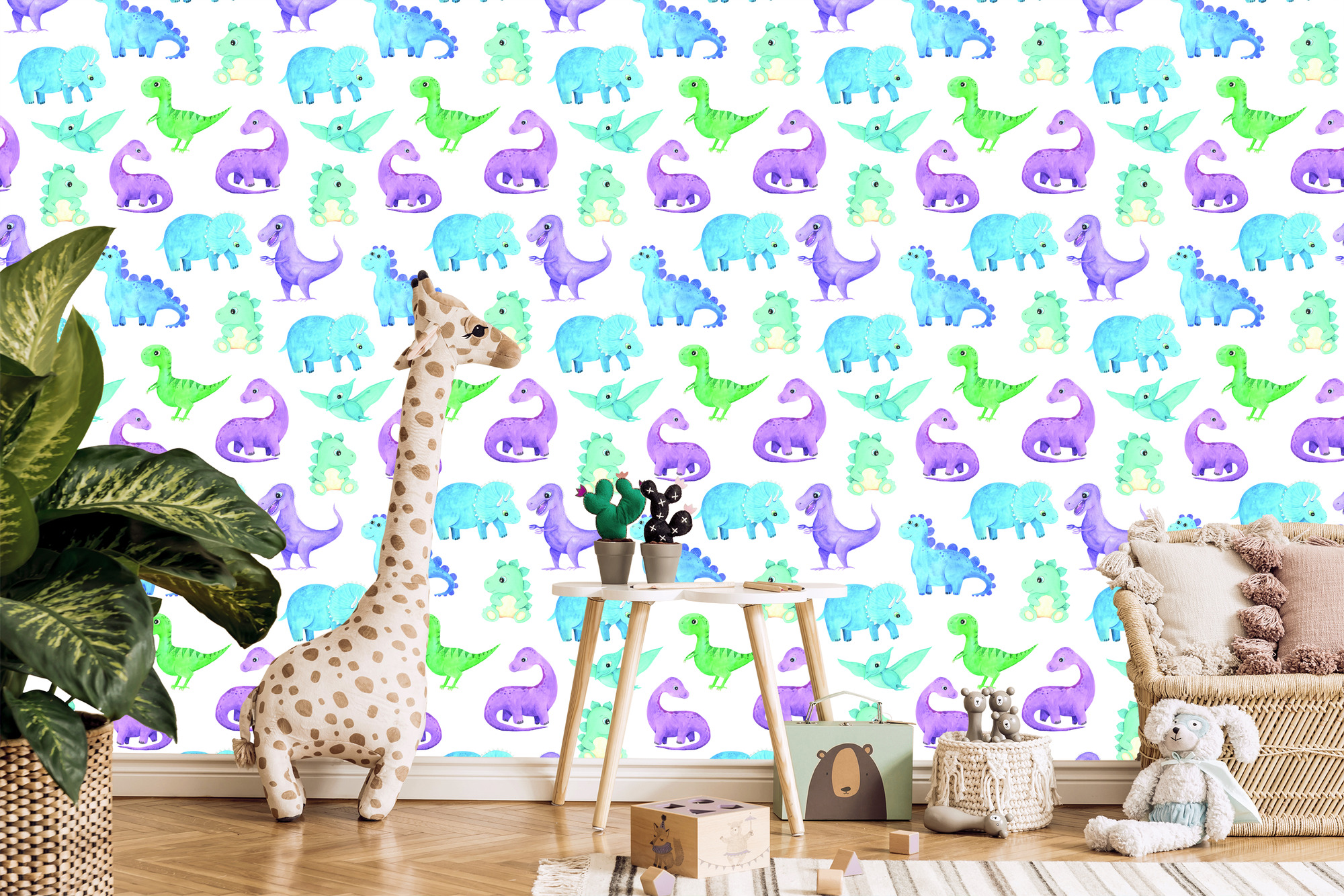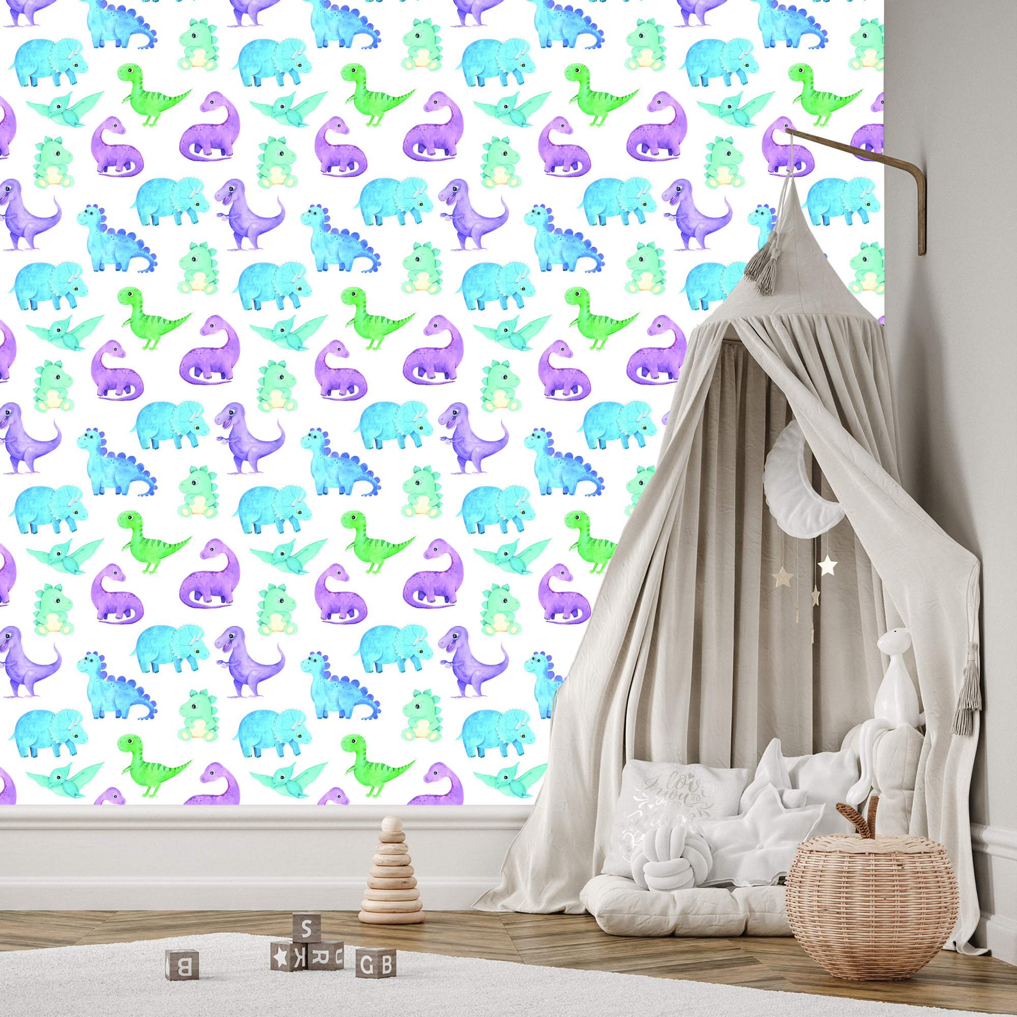 Tapete mit bunten Dinosauriern, für Jungenzimmer 1 Rolle