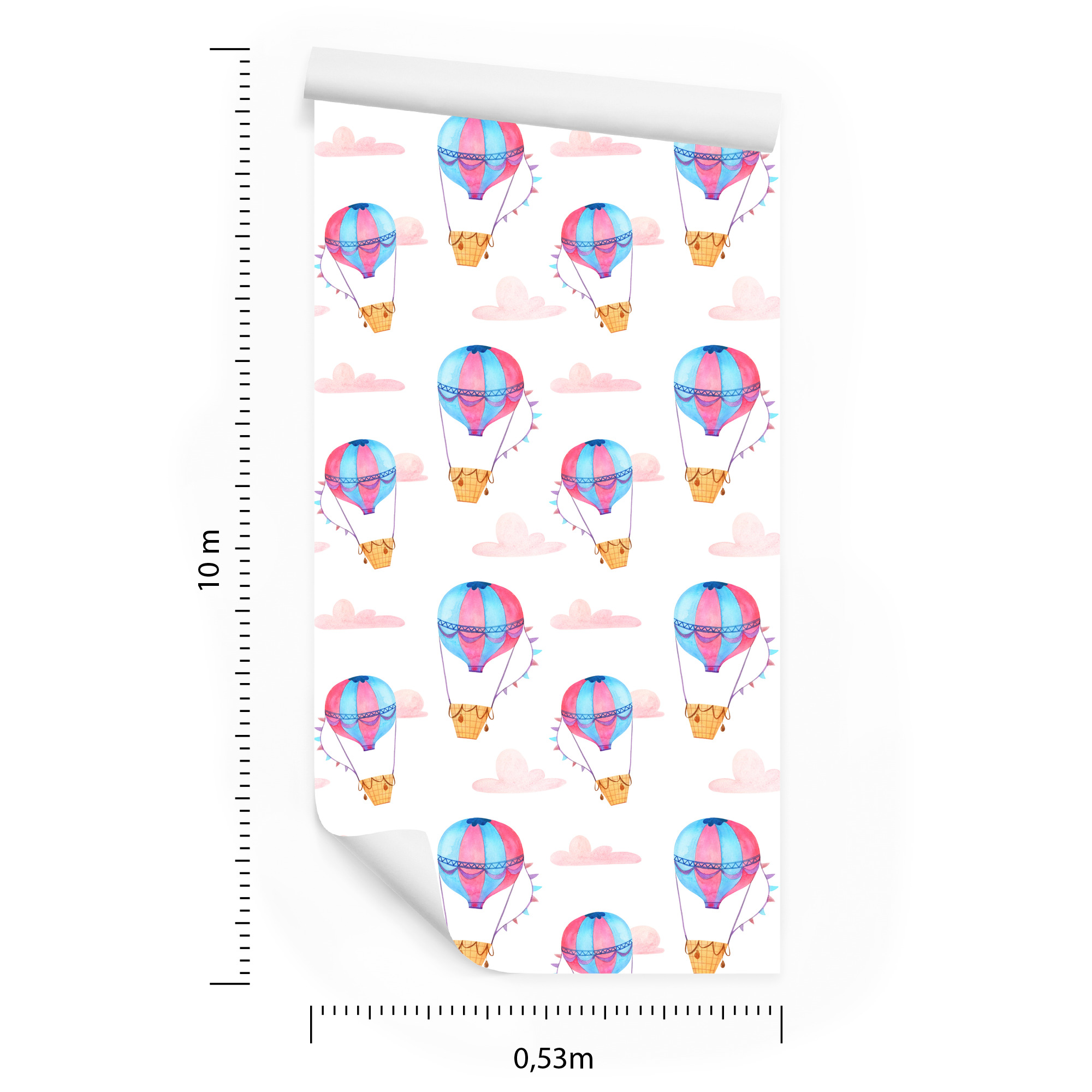 Tapete Pastellfarbene Luftballons Wolken, für Kinderzimmer 1 Rolle