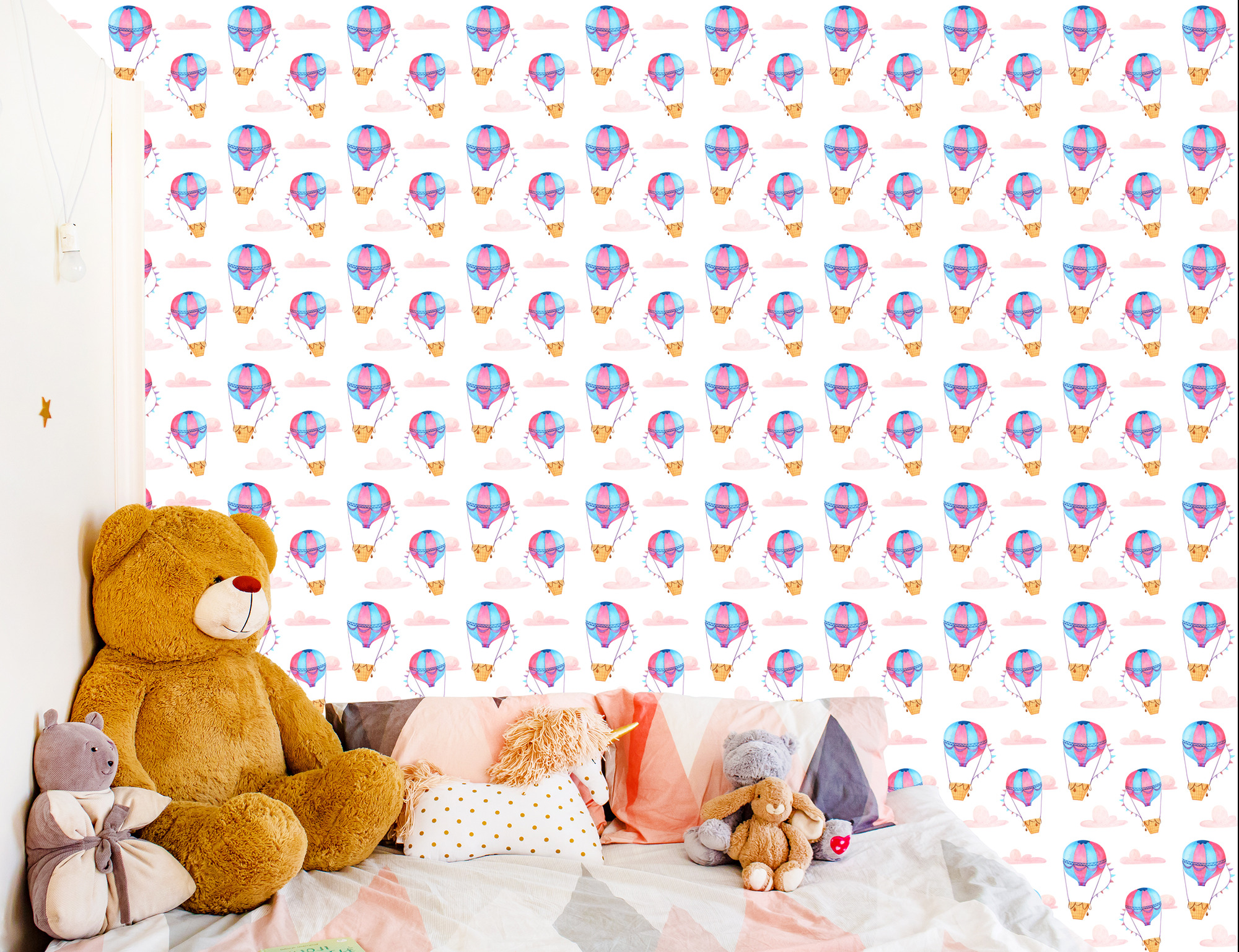 Main Page » Tapeten fürs Kinderzimmer » Tapete Pastellfarbene Luftballons Wolken, für Kinderzimmer 1 Rolle
