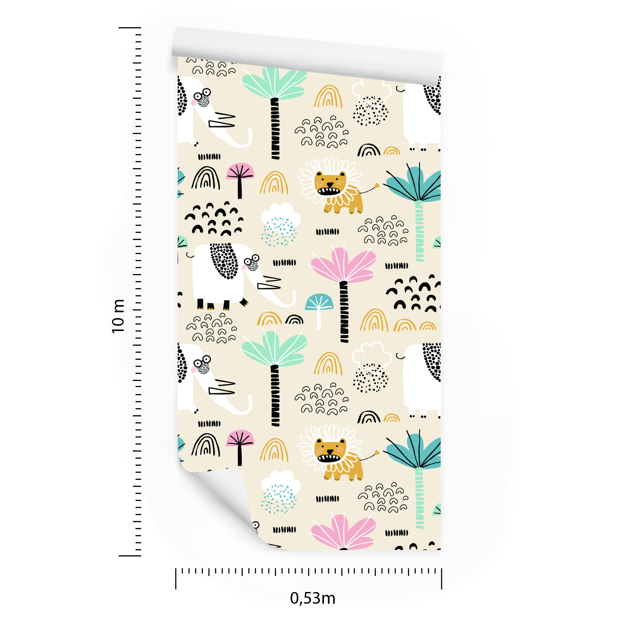 Tapete Safari Löwen Pastellbäume, Jungenzimmer, 1 Rolle
